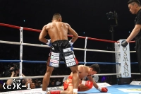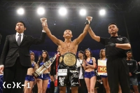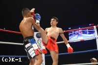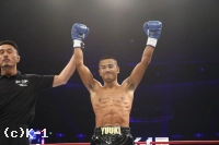 1R、江川は左インロー、前蹴りと前に出ていく。ジャオスアヤイは跳び顔面前蹴り。江川はしかしこれをブロックし、左右のボディフックで動きを止め、右ローから右フックにつなげるとジャオスアヤイは顔をしかめてダウン。立ち上がったジャオスアヤイだが、すでにダメージが深く、江川は右ローから右・左フック・左ボディフックと放ってジャオスアヤイを沈め、優勝を決めた。