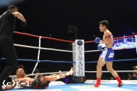 ジャオスアヤイはフックとローで卜部をフラつかせ、右ストレートで卜部を後方に倒してダウンさせる。立ち上がった卜部は跳びヒザに襲われるが、しかし右スイングフックを決め、ジャオスアヤイからダウンを奪い返す。フィニッシュに向かう卜部だが、ここはジャオスアヤイが右クロスを当てて止める。
