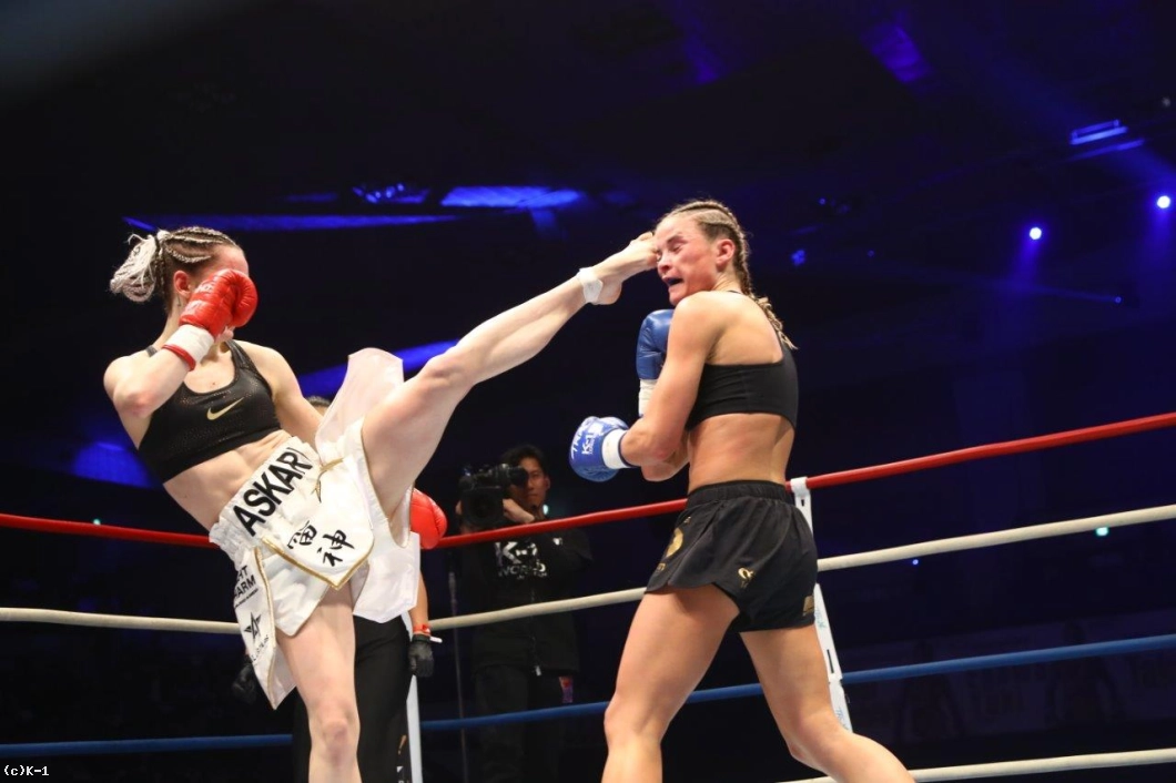 「(試合の感想は?)ハードな試合だったが、今日は残念な結果に終わってしまった。(相手の印象は?)強いというのは事前に分かっていたが、結果が3ー0になるとは思っていなかった。ただまあ、本当にいい選手だと思う。(ここからどう巻き返していくか)もしK-1が機会を与えてくれるのであれば、今日誰がチャンピオンになっても、ぜひタイトルマッチをやらせていただきたい。自分がタイトルマッチに値する選手だと自負しているので、もしチャンスをいただけるのであれば、タイトルに挑戦させていただければと思う。(ファンの皆さんにメッセージを)皆さん、私の試合を楽しんでいただけていれば光栄です。私自身、すごく日本が好きなので、また戻ってこれたらとてもうれしく思います。KANA、おめでとう。でも私たちはまだ1勝1敗だということを忘れないでほしい。K-1のタイトルを懸けて、どちらが強いか決着をつけましょう」