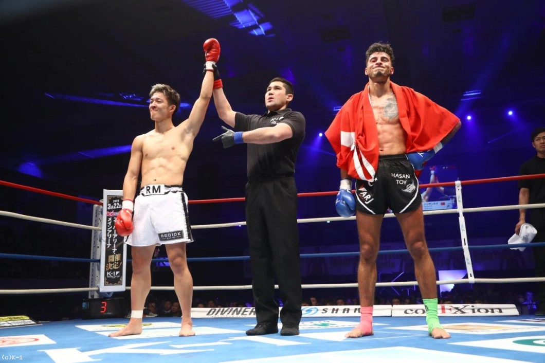 3R、右ローを入れる野杁。ハッサンはこれを嫌がり前蹴りで距離を作らんとする。ハッサンは野杁の接近際に顔面へのヒザ蹴り。野杁はすぐに前進する。距離が開くとハッサンは顔面前蹴り。野杁は間合いを詰めると足へのヒザ蹴り、ロー、パンチの連打を見せるが、ハッサンは大崩れしない。逆にハッサンのパンチで鼻血が見られる野杁。ロープに詰めて左右のボディフック連打を見せる野杁だが、ハッサンもヒザを突き立て反撃してくる。野杁が追いかけ右ロー、右ハイ、ヒザと放って終了。判定は29−29、30−29、30−29の2−0で野杁。世界の強豪ハッサンを降した。