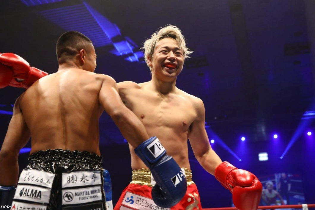 「今日はたくさんのご来場ありがとうございます。今のK-1になって初めて名古屋に来ることができて嬉しいです。これから日本中、世界中にK-1を広められるよう江川選手と引っ張っていくのでよろしくお願いします。今年はこれで試合終わりなんですけど、来年3月のK'FESTA、僕出場するので応援よろしくお願いします。(江川に)やっぱりパンチがエグい。ありがとうございました」