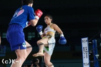 2R、美伶はミドル、右クロスから縦回転蹴りの大技。小澤はこれを意に介さずベタ足で前に出て圧力を与え、パンチ&ヒザ。美伶は押し返して対抗するが、小澤のパンチに鼻血が見られる。小澤が美伶を追い詰めて終了。