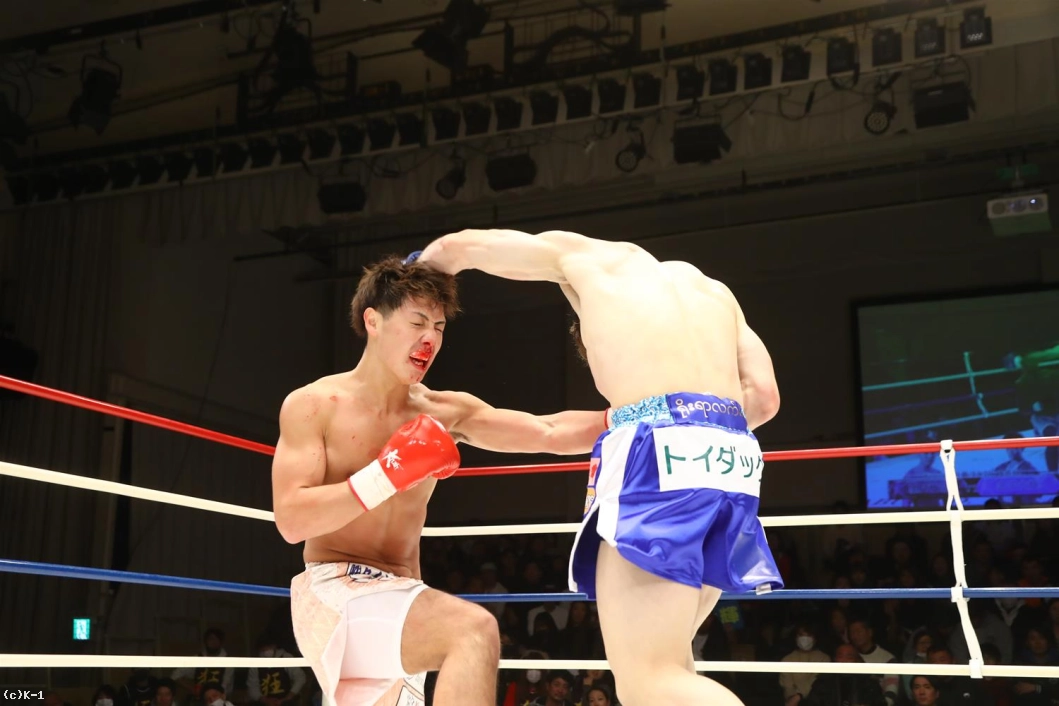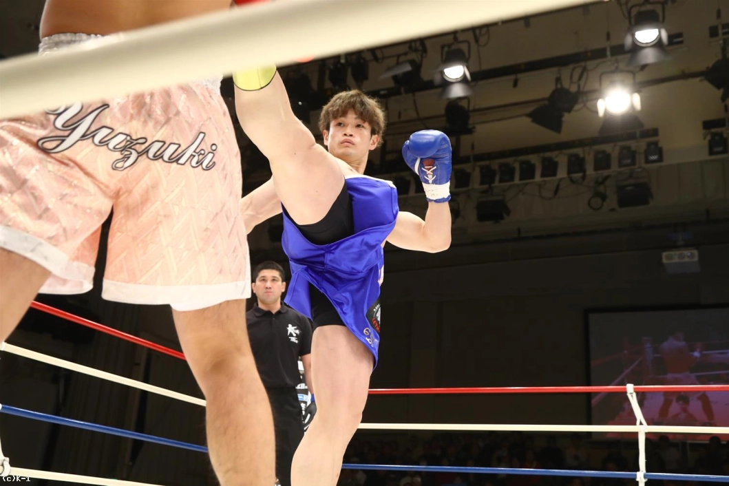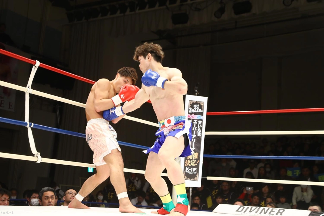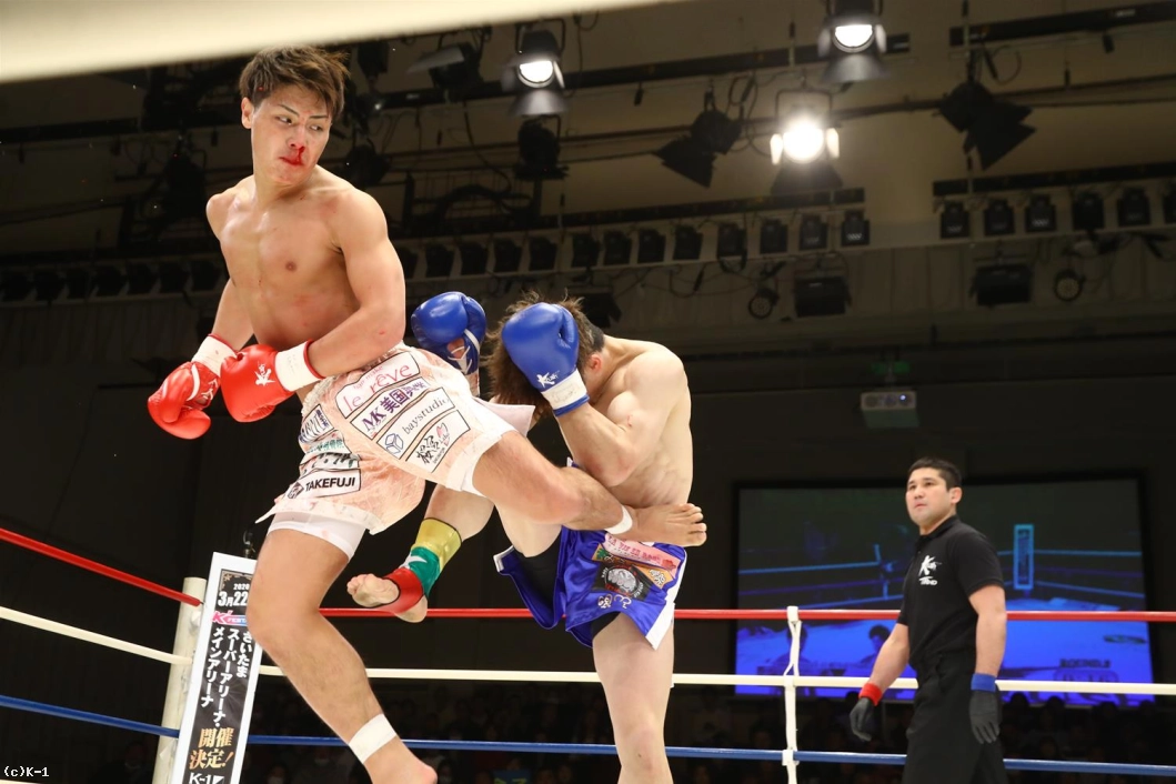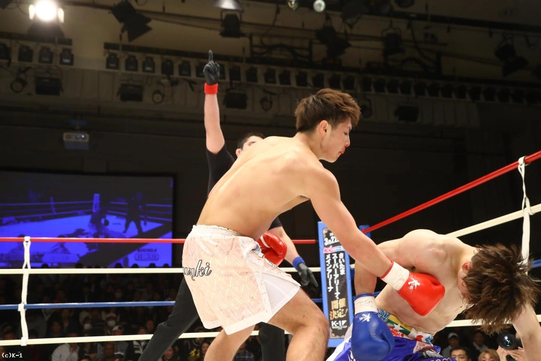 「ラウェイチャンピオンの金子選手、めちゃめちゃ頑丈で本当に強かったです。危ない場面もあってすみません。1年ぶりぐらいの勝利で、すごい練習して、でもまだまだっていうのを実感して、またすぐ練習するんですけど、3月のK-1を狙ってるので、こんなもんじゃないんで、K-1で見せられたらいいなと思います。今日で後輩が違う道を行くんですけど、俺はこの道でトップに行くんで、頑張ろうっていう感じです。今日は納得いく試合じゃなかったですけど、また頑張るんで応援してください」