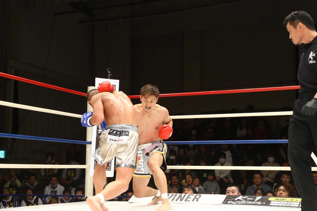 「(試合を振り返って?)Krushに戻ってきて、2020年一発目ということで、KOで締めくくれてよかったと思います。試合自体も堀井選手もがんばってくれて盛り上げてくれたので。いい作品になったかと思います。(後楽園ホールでの試合に関しては?)後楽園でしか生まれない試合もあるので。大きい会場で聞こえない歓声も聞こえたので、懐かしい感じがしましたね。また、機会があったらKrushに戻ってきたいです。