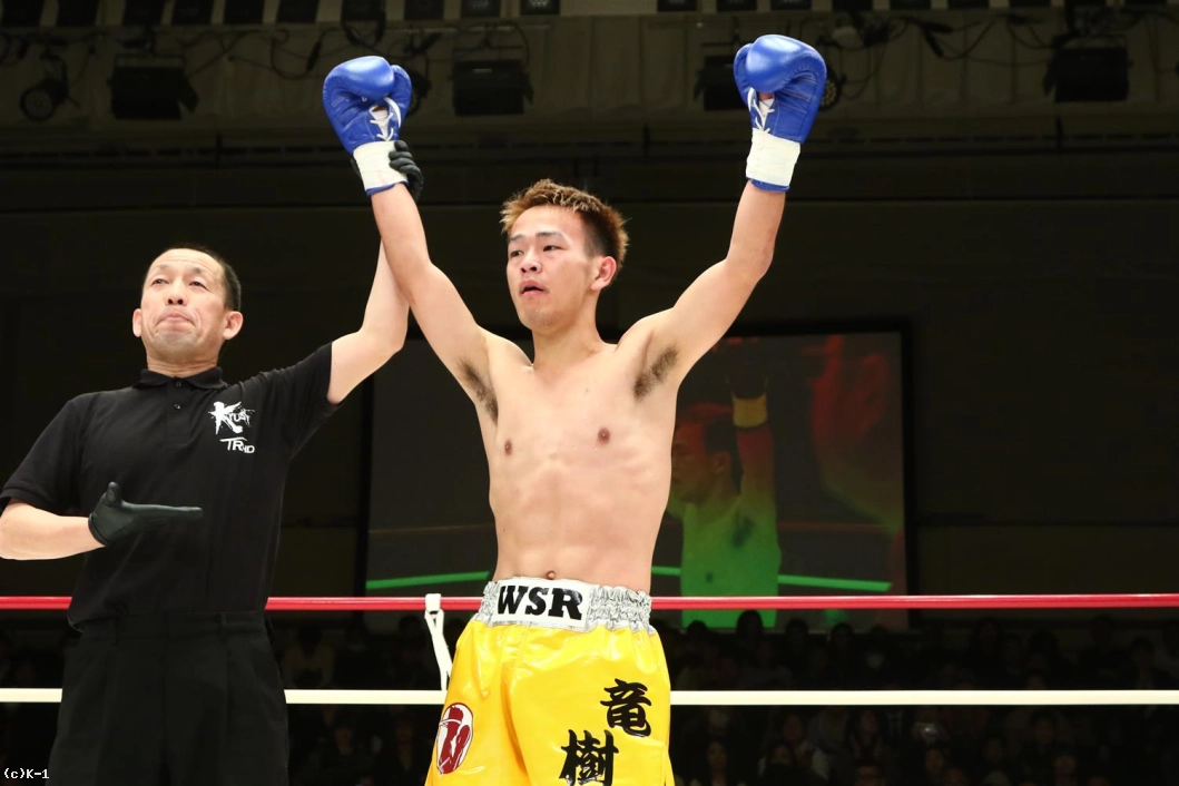 3R、竜樹は前蹴りとミドルを当て、佐野の進入を阻む。逆に自らパンチを打って出ると右ストレート、左フックを振るって佐野を攻め込む。そして踏み込んでの左フックでとらえると佐野はやや時間をおいてダウン。立ち上がるもダメージが見られ、レフェリーは試合をストップした。