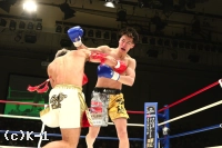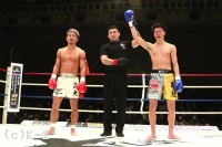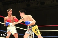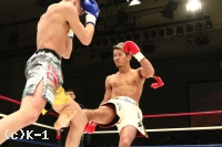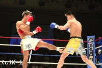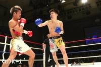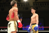 3R、倉崎が前に出る。岡嶋はこれにサイド&バックステップしながらジャブを当てていく。前に出る倉崎に対し、岡嶋はボディへのヒザと前蹴りでストップせんとする。それでも倉崎は止まらず圧力を掛けていく。より口が開き苦しげな岡嶋だが、ボディへのヒザを効かせる。倉崎も左フックと右ストレートでダウンを迫って終える。判定は30−27、30−27、30−27で岡嶋となり、デビュー3連勝を飾った。