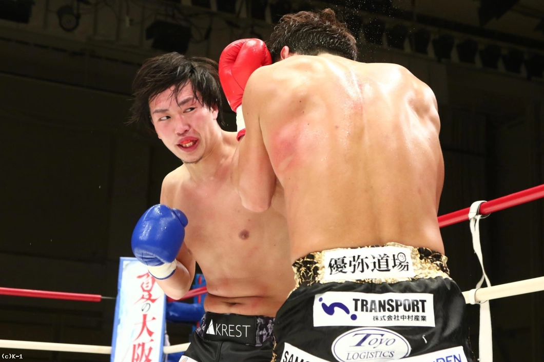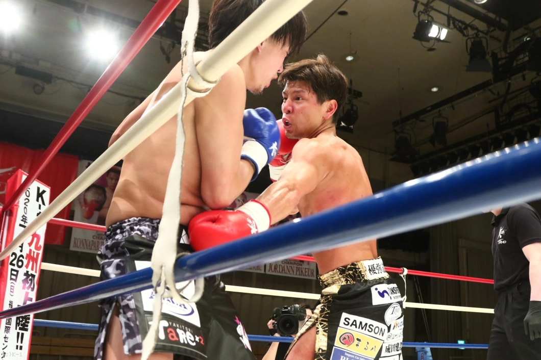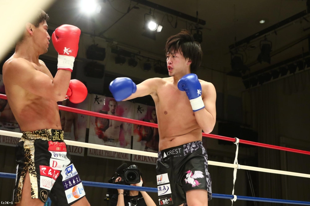 延長R、ジャブ・左ミドルと山本が先手で手を出す。そして伸ばした右クロスがとらえ、佐野はやや後退。ここを持ち直すと佐野は前に出て山本を押していく。のっしのっしと前に出て、プレッシャーをかける佐野だが、山本の右ストレートがヒット。両者近距離でボディを叩き合う。左右フックの佐野に対し山本は右ストレートで応戦する。判定は3者10-9で山本。延長戦で佐野を振り切り勝利した。