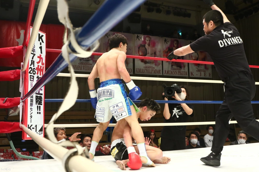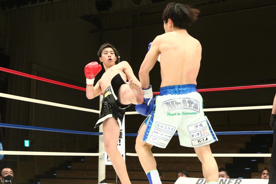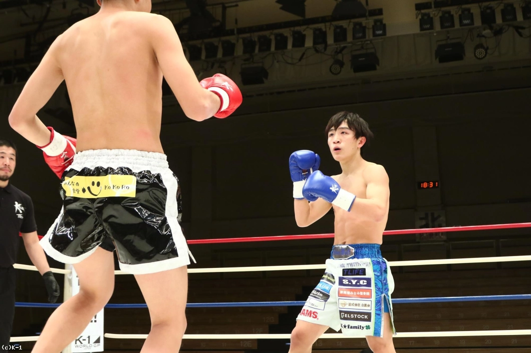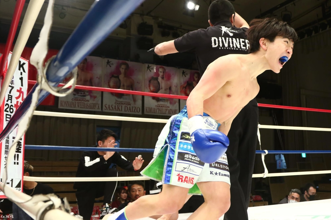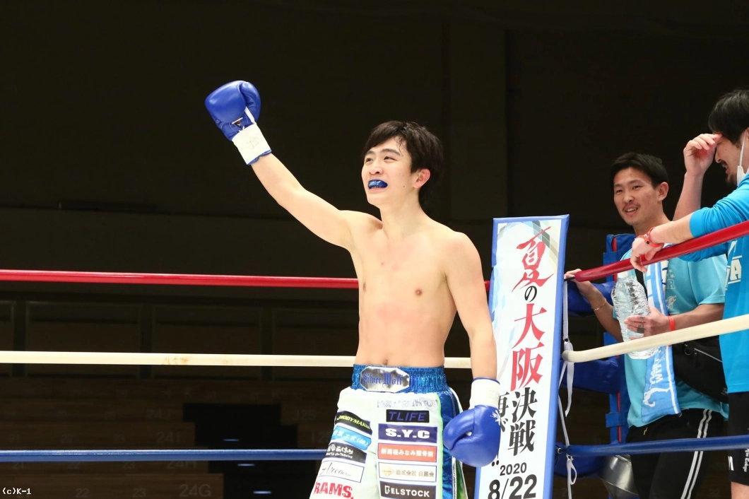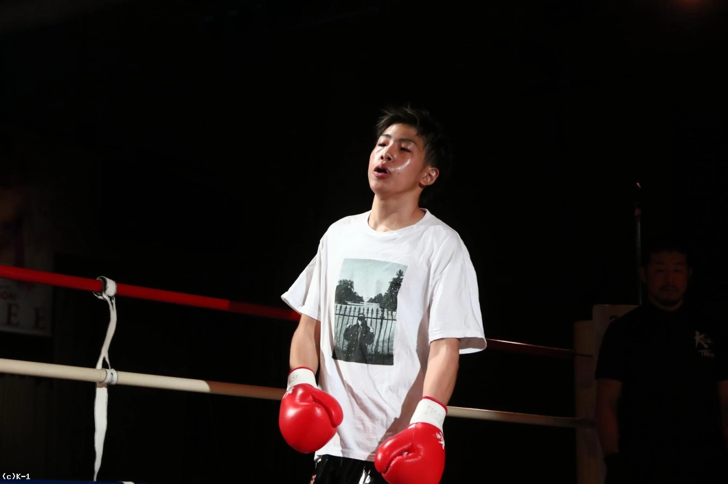 「(試合を振り返って?)けっこう落ち着いた試合でいけたかなと思っていて。いつもやらせてもらってる、村越優汰さんや小澤海斗さんの懐が深いので。(相手は)わりとけっこう距離を取るタイプだと思ってたんですけど、意外と自分の間合いでできるなって、いけるなって印象があって。あと、蹴り返しはいつも左右田泰臣さんのミットでやっててクセになってたんで、最初から自信を持って向かえたかなって思います。
