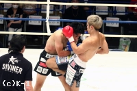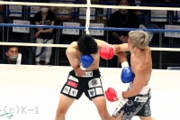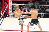 2R、佐々木は距離感を掴んでいるか、右ミドル、連続しての左ミドルと次々に当てていく。近藤の左フックを冷静に見極めグローブで弾く佐々木。近藤は右フックを当てるが、その後の攻撃・ヒットを続けることができない。さらに佐々木が左ミドルを当てる。