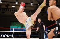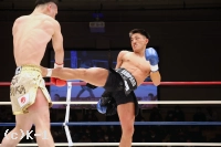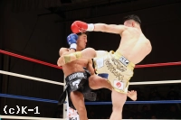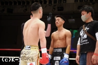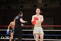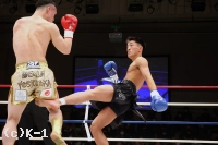 3R、黒田、吉岡の順でローを当て合う。両者なかなか均衡が崩れない。黒田が連続でローを当てていく。黒田は跳びヒザを放つなど吉岡を懐に入らせずにいたが、吉岡がジャブからの左ハイキックを不意に放って当て黒田をダウンさせる。判定は30-28、30-28、29-28の3-0で吉岡。橋本の待つ決勝に進んだ。