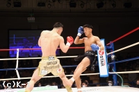 2Rも両者はサウスポー。前に出ていく吉岡だが、やはり黒田は早く見て取り、出ようとしたところへ左ストレート、あるいは右フックのカウンターと振るい吉岡は踏み込めない。