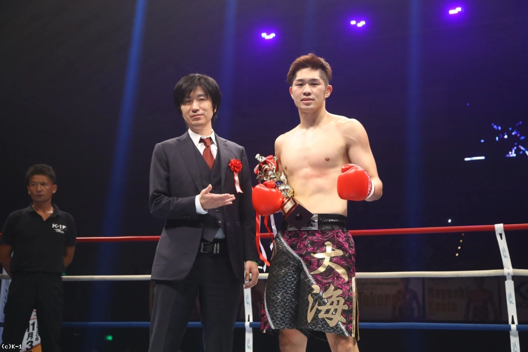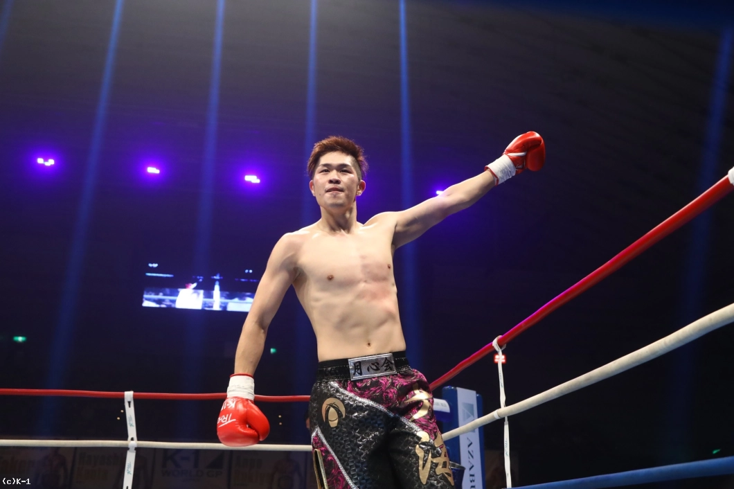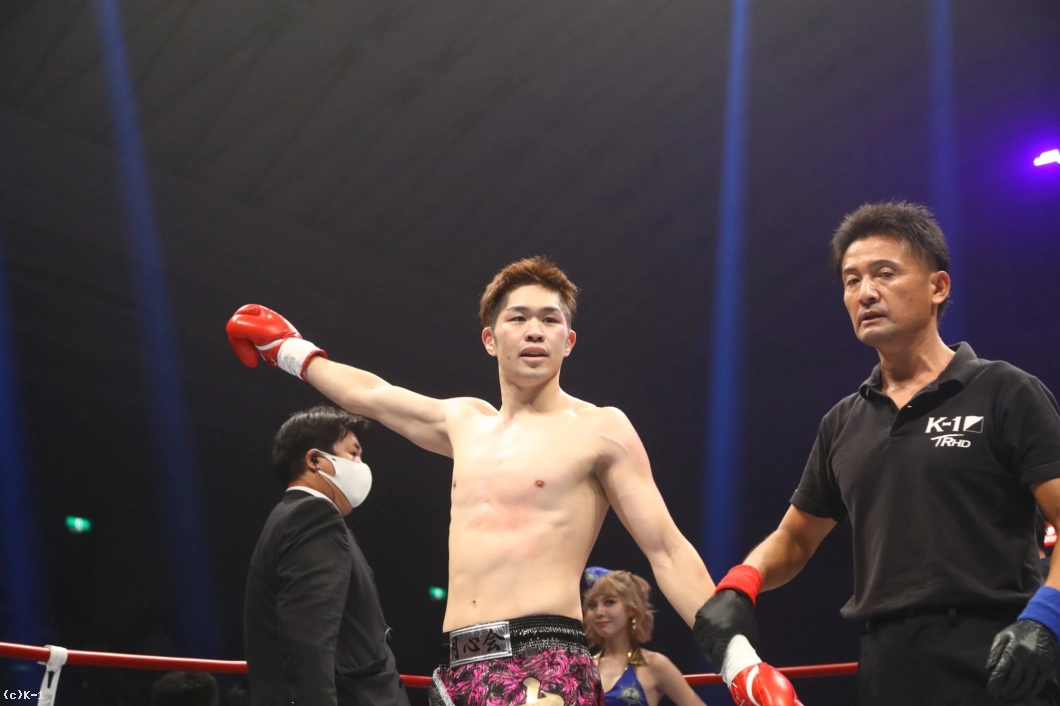 (試合後、木村選手に目線を送った?)木村選手にウィンクしたかったんで。もっと外国人選手とか強い選手と試合をして、勝っていけたらいつか挑戦できるかなと思うので、どんどん勝ち続けていきたいなと。木村選手を目指したいんですけど、Krushでピケオー選手に負けてるので、ピケオー選手ともやりたいですし。ベルトへの思いも強いんで、どのベルトでもいいので、とにかく獲りたいと思ってます。(今後は)応援していただきありがとうございました。今後また、強い選手と試合をして勝ち続けて、絶対にベルトを獲らないとって思っているので、応援よろしくお願いします」