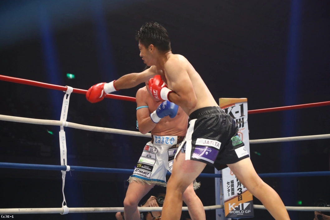 2R、近藤はプレッシャーをかけて泰斗をロープ際に追い詰め、右ストレートと左フックでダウンを迫る。泰斗もパンチを返すがダメージで足元がしっかりしておらず、力が感じられない。近藤はプレッシャーを緩めず泰斗をロープ・コーナー際から出させない。そして左フックと右ストレートで襲い泰斗をダウンさせる。