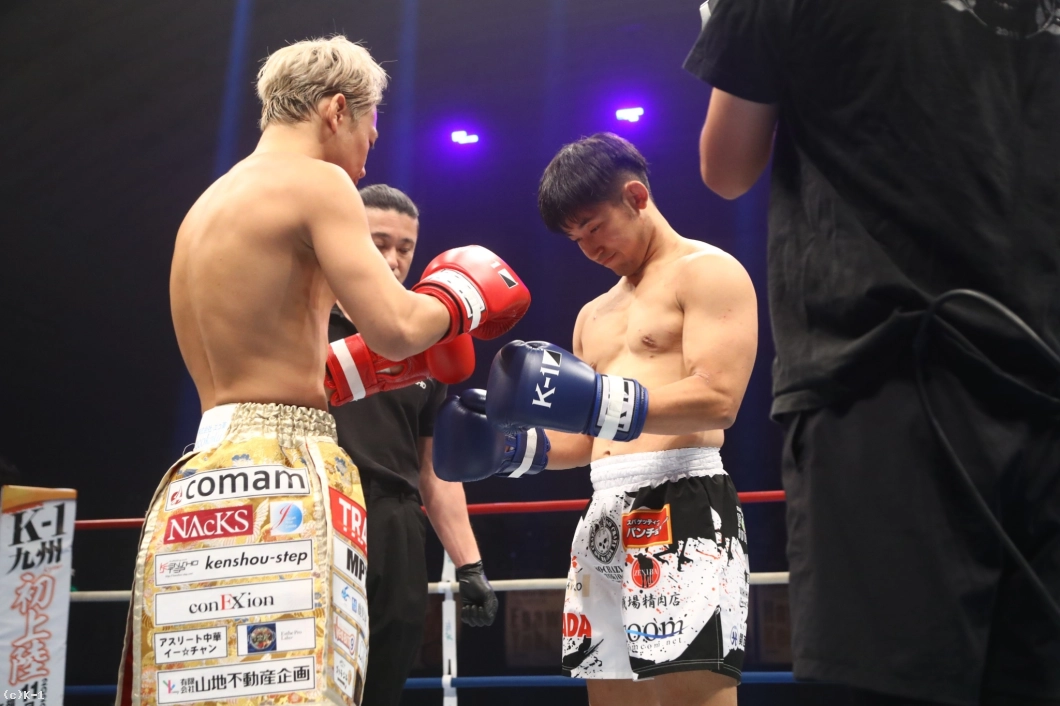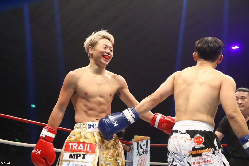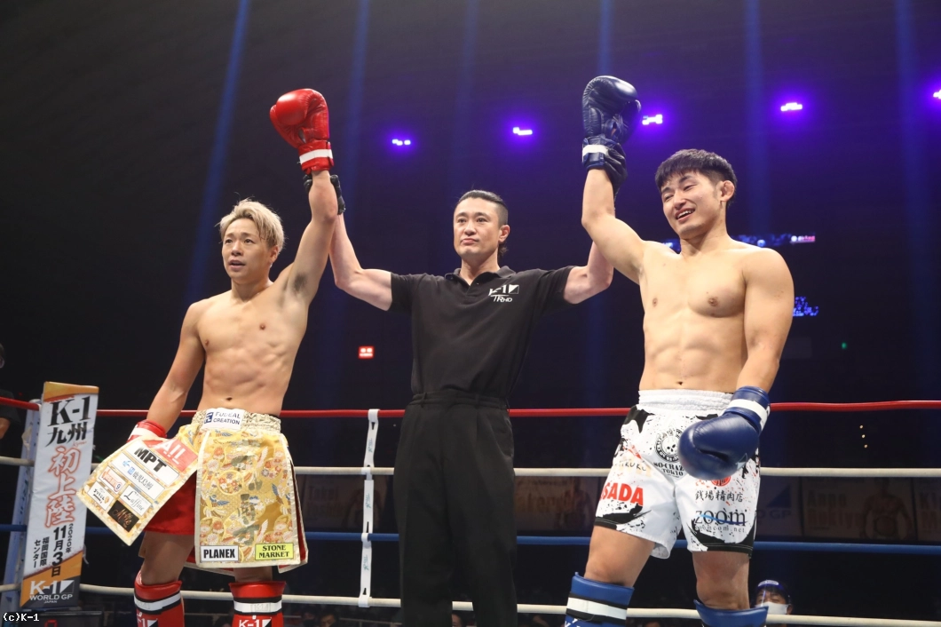 「久々のK-1ということで、エキシビションですけど紀左衛門くんが帰ってきてくれて、いろんなリングで戦ってきて最後にK-1を選んでくれて、その気持ちに応えようかなと思って、試合と同じ体重まで絞って今日のリングを迎えました。これから紀左衛門くんが面白い試合をしてくれると思います。11月、初めて福岡でK-1をやります。僕もタイトルマッチをやるので応援よろしくお願いします」
