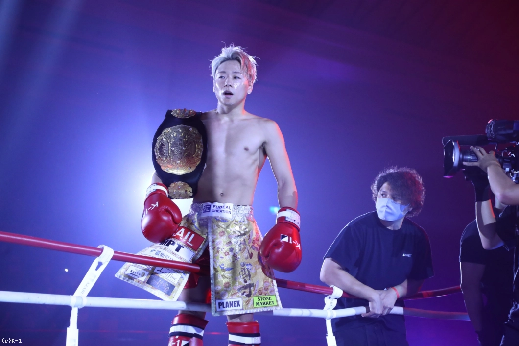 「久しぶりにK-1に帰ってこれて、エキシビションですけど武尊とやらせてもらって自分の実力がどこら辺にあるか分かったので、武尊の顔に泥を塗らないように江川くんの57.5㎏のベルトを獲りに行きたいと思います」