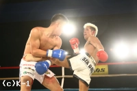 3R、大関はリーチを活かして距離を作ってこれを保っており、梨緒弥が出てくるとヒザを突き上げる。だが、梨緒弥の突進を止めんとしての組みがレフェリーから注意を受けてしまう。大関はボディフック、顔へのフックと強振するが、梨緒弥もそれを頭を振ってかわしながらのフックを逆に打ち込む。大関のボディにヒザも突き刺す梨緒弥。判定は30-29、30-30、29-29で大関が1票得るもドロー。延長戦に突入となる。