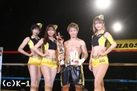 「俺は女が大好きなんで、バンタムのKrushのトーナメントがちょっと前に決まって萎えていたんですけど、優勝したんで1週間ぐらい女遊びしようかと思ってます。KHAOSガールズと食事会をしたいんですけど、俺はまだまだここで終わらないし、まだまだ強くなってるんで、練習もっともっとやって、みなさんにまた試合を見てもらえたらと思います。