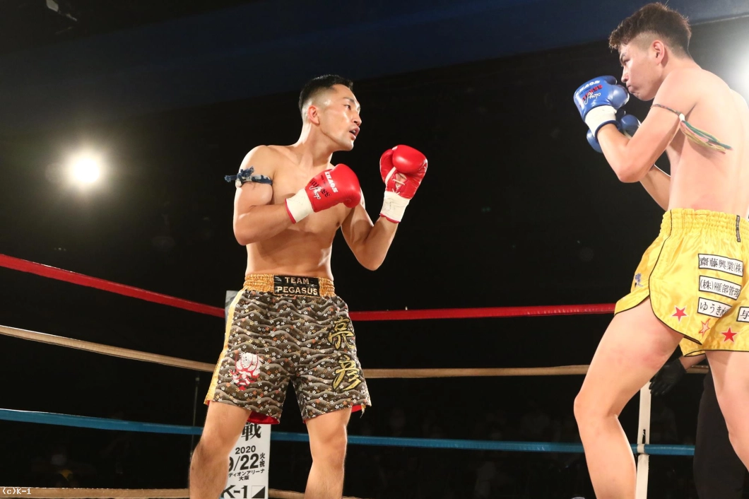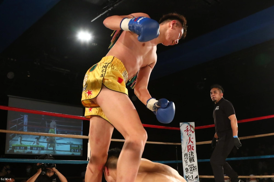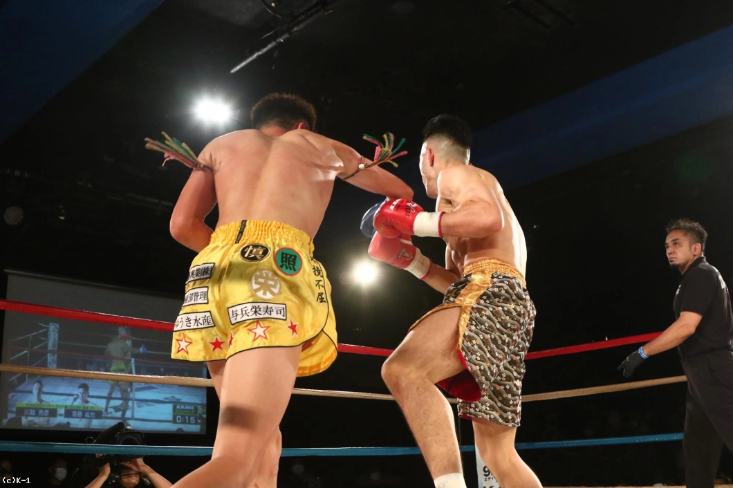 2R、齋藤はガードを高くした構えから左ミドル、右ロー。川越はそこへパンチで向かい、試合は蹴りvsパンチの図式となる。川越がロープを背負った齋藤にガードの上からでも構わずフックを上下に振るう。齋藤はこれを組みついて押さえてしまい、ホールディングで注意を受ける。右ストレート・右クロスで攻める川越に齋藤は右アッパーで反撃。この後で右クロスを死角から打ち込み、川越は崩れ落ちてダウン。齋藤がデビュー戦をKO勝利で飾った。