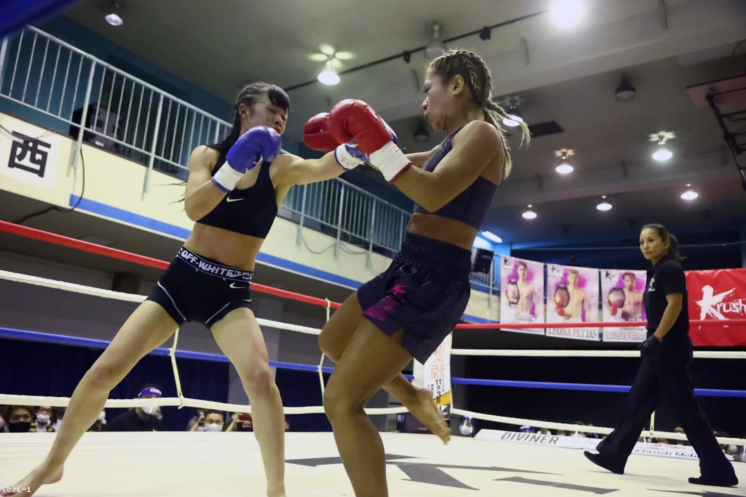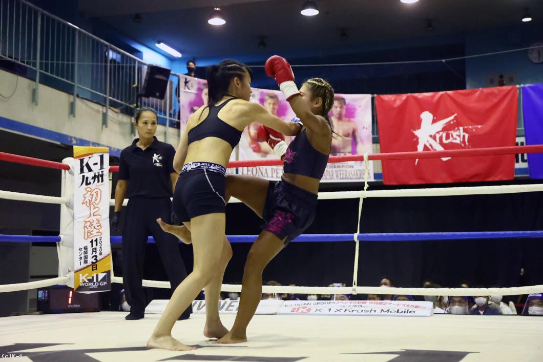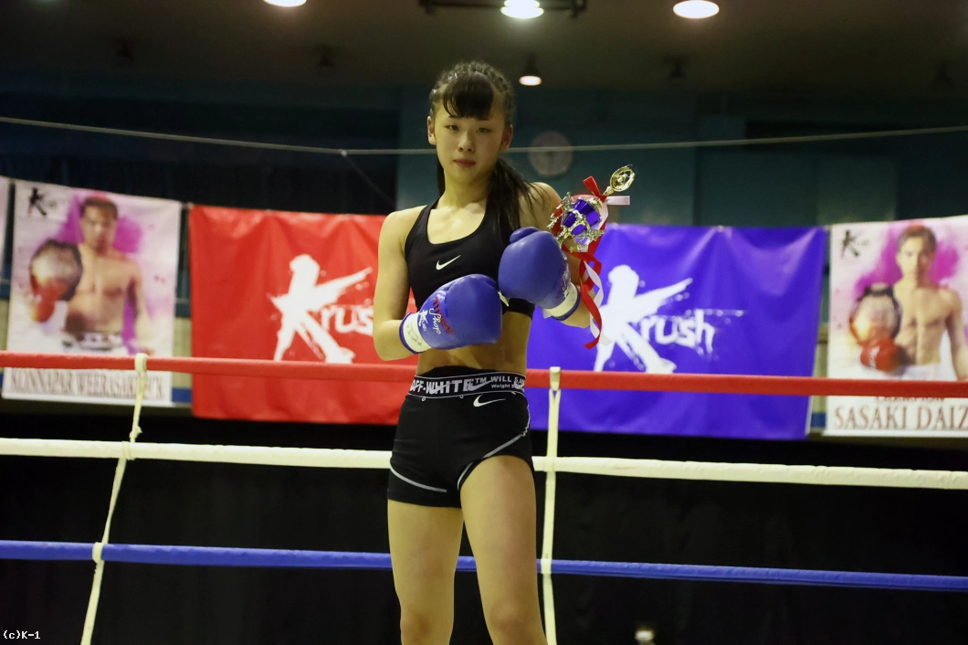 「デビュー戦でホールディングやローブローで印象が悪かった部分もあったと思うんですけど、ストレートをちゃんと当てられてよかったです。(AIKOは)気持ちが強い選手で、戦っているときに押し負けそうになった場面もありました。(今後の目標は)Krushのベルトを獲ることです」