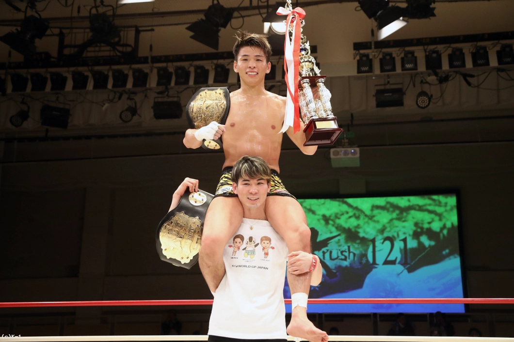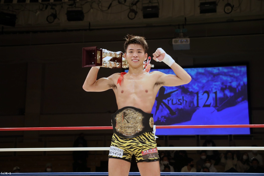 (今後の目標は?)これからもっと強い相手が出てくると思うし、トップ選手に勝っていきたい。いずれK-1でウェルター級王座決定トーナメントもあると思うので、Krushのベルトと共にトーナメントに出たいです。まだ僕は頼りないチャンピオンだと思いますが、兄ちゃんみたいな頼りがいがあるチャンピオンになりたいです」