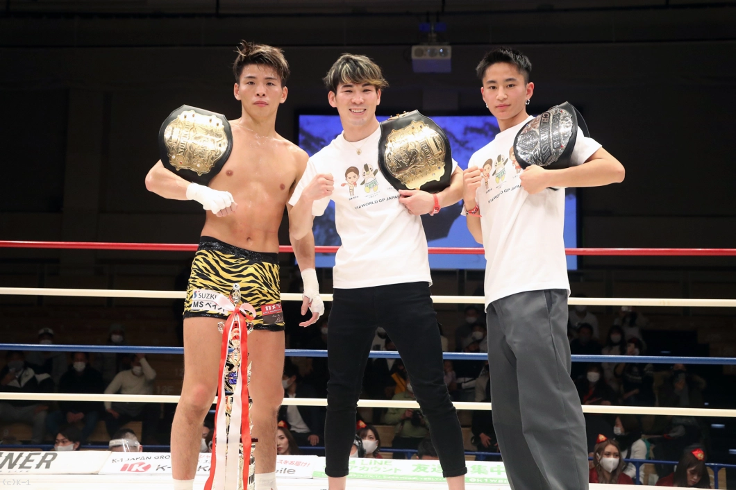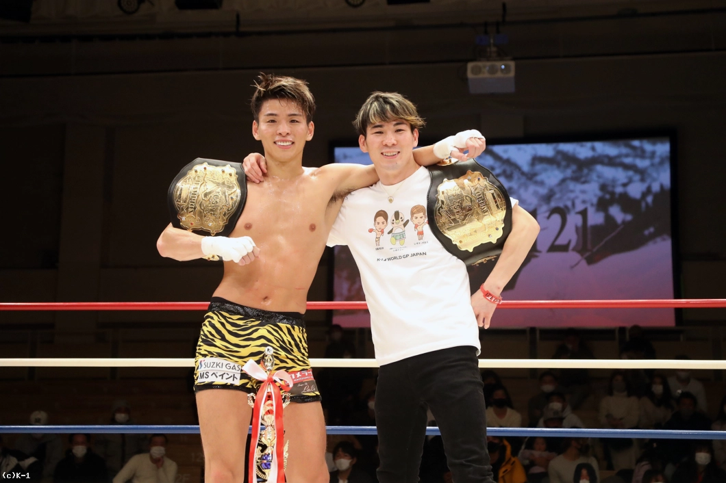 「試合前の12月末に兄ちゃんとスパーして肩を脱臼したり、すごい不安だったんですけど『俺ならできる』と信じて、ここまでやってきてよかったです。空手時代から応援してくれたお父さんとか、亡くなっちゃったんですけどお母さんにベルト姿を見せられてめちゃめちゃ嬉しいです。これからK-1の方もチャンピオンを目指して頑張っていくので応援よろしくお願いします。たくさん応援してくれた人たちや友だちだったり、本当にやっていてよかったと思いました。前回、変な勝ち方しちゃったんですけど、もう1回タイトルマッチで松岡力選手と戦いたいです。今日は余韻に浸って、明日からは女の子のために頑張ります(笑)」