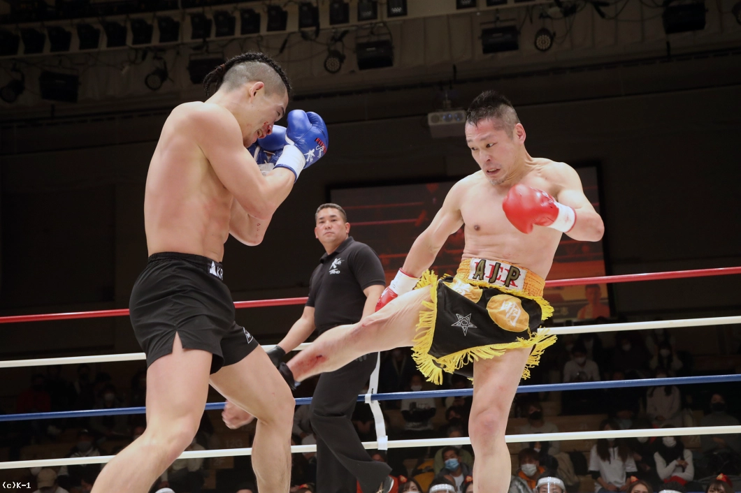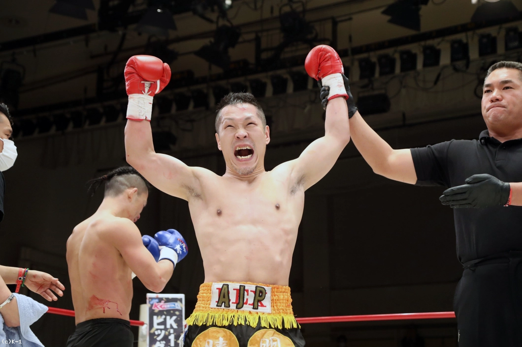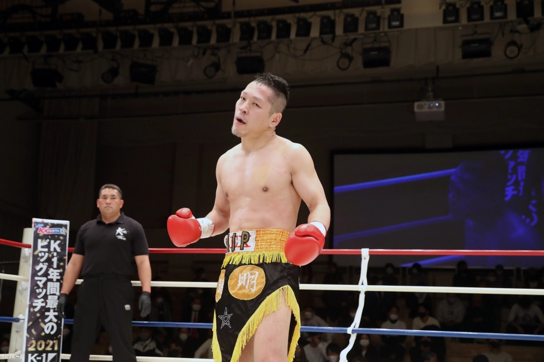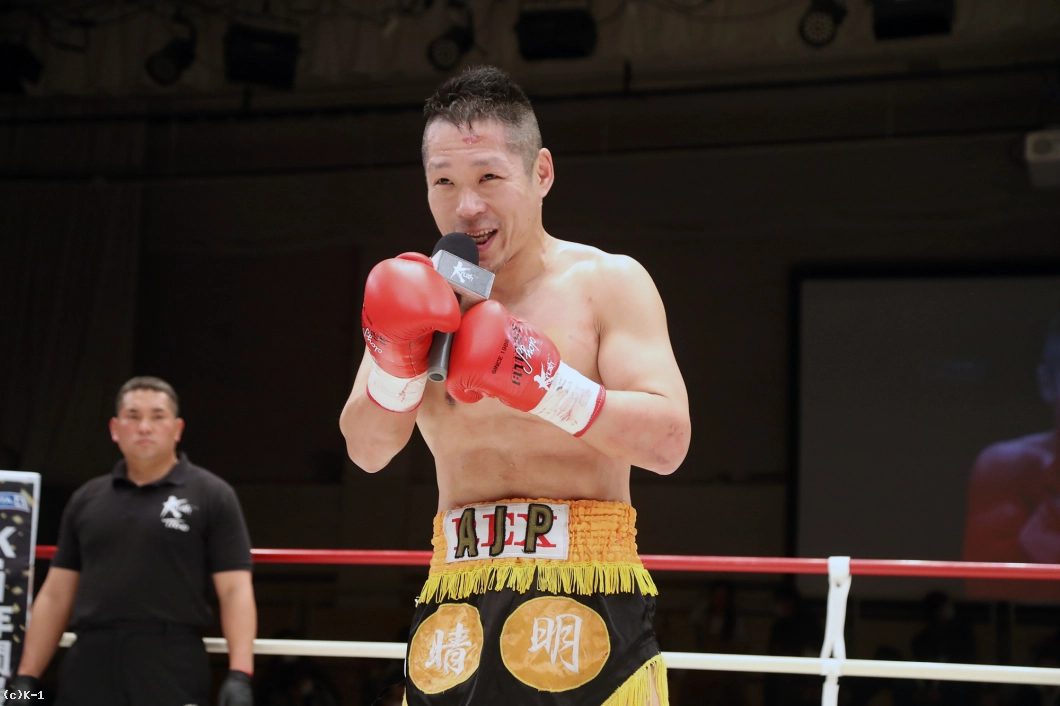 「今は試合が終わったばっかりで、久しぶりの試合で緊張しました。明戸選手がガンガンに来たんで、3Rは悪い癖が出てぶちきれちゃって、相手のパンチを受けきってやろうとか思っちゃって(苦笑)。でも勝ててよかったです。(対戦相手の印象は?)パンチもすごい思かったし、蹴りも強かったです。腕を蹴られて『痛っ!』と思いました。気持ちも強かったです。(今後の目標は?)復帰会見でも言ったように(K-1 JAPAN GROUPには)リングで手合わせしたい相手がいるんで、僕も長く続ける気はないんですけど、勝っていけば道は開けると思っています。試合でちょっと怪我しちゃったんで怪我を治して、次もKOしたいと思います」