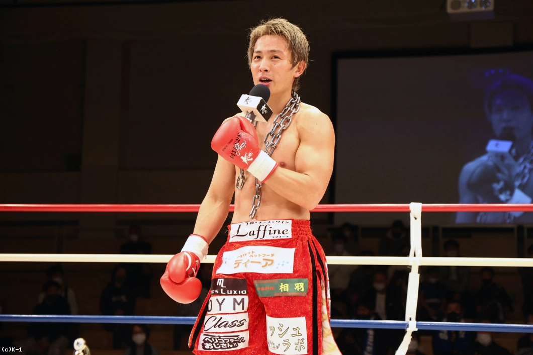 「こういう時期に名古屋からも応援に来てくれてありがとうございます。最後気持ち折れそうだったんですけど、みなさんの声援のおかげでダウンを取って勝つことができました。やっぱりKrush・K-1はKOでなきゃダメですね。まだどんどん強くなっていくので、トップ選手とやれるよう、これからも成長していくのでよろしくお願いします」