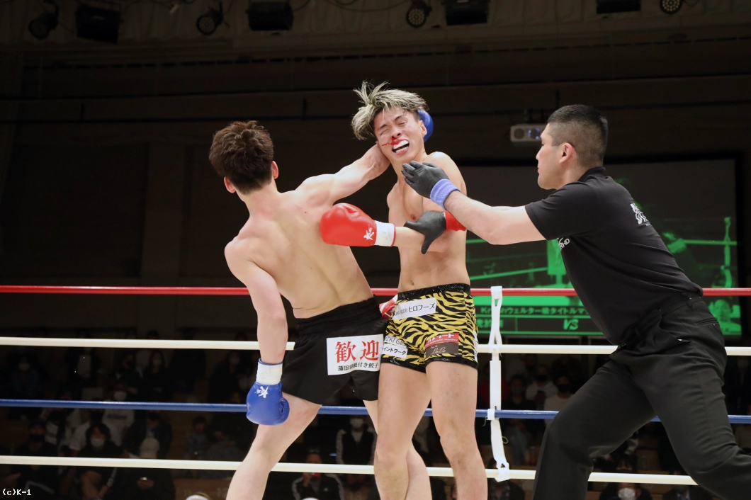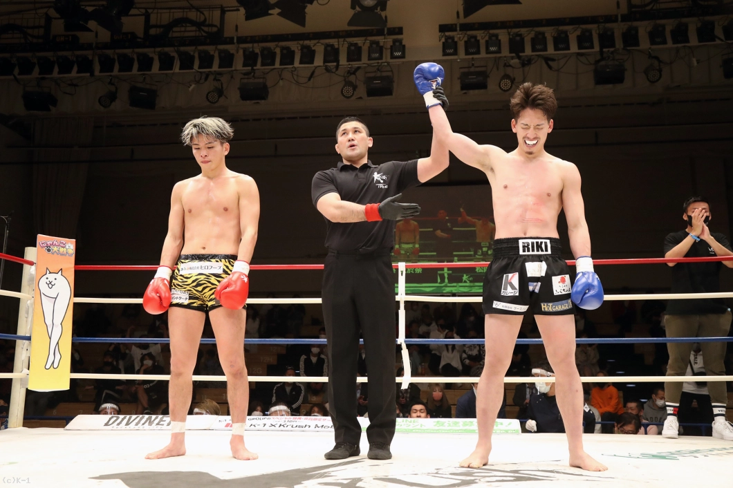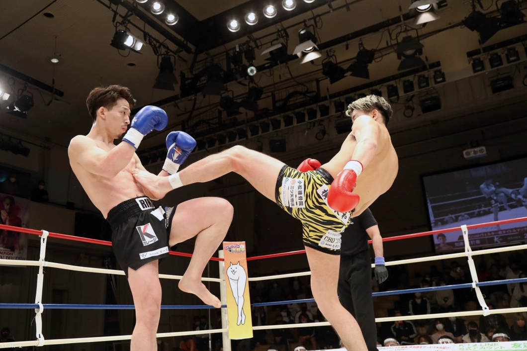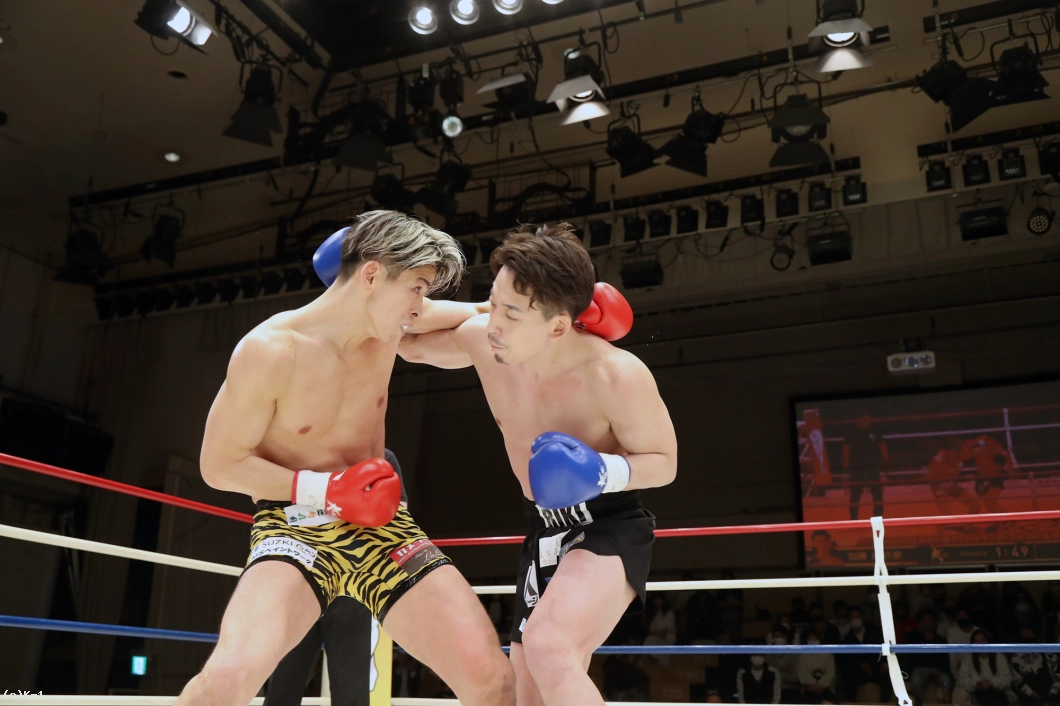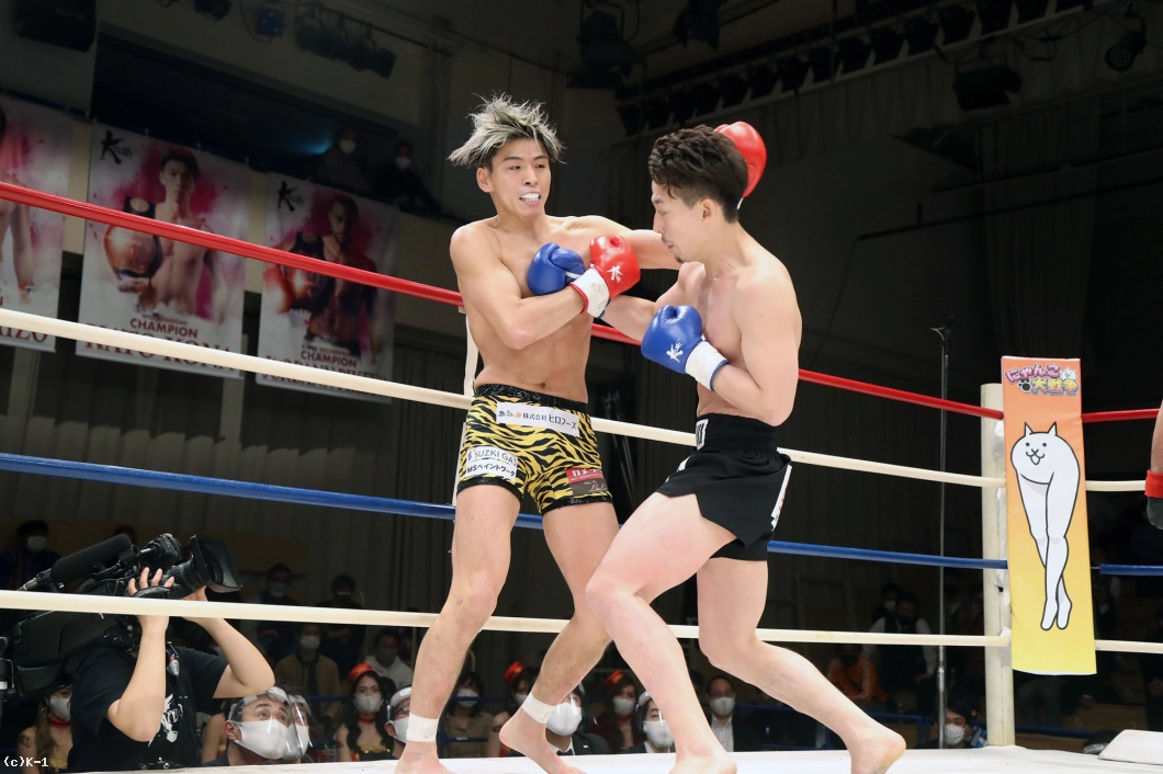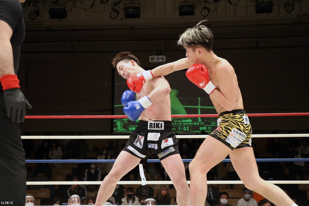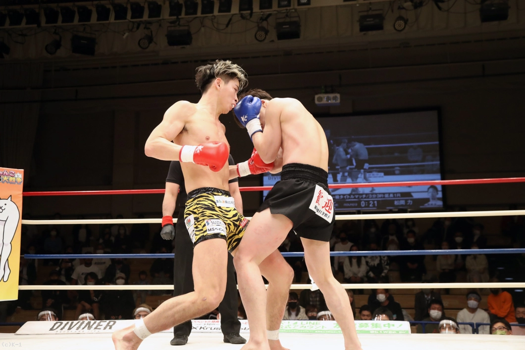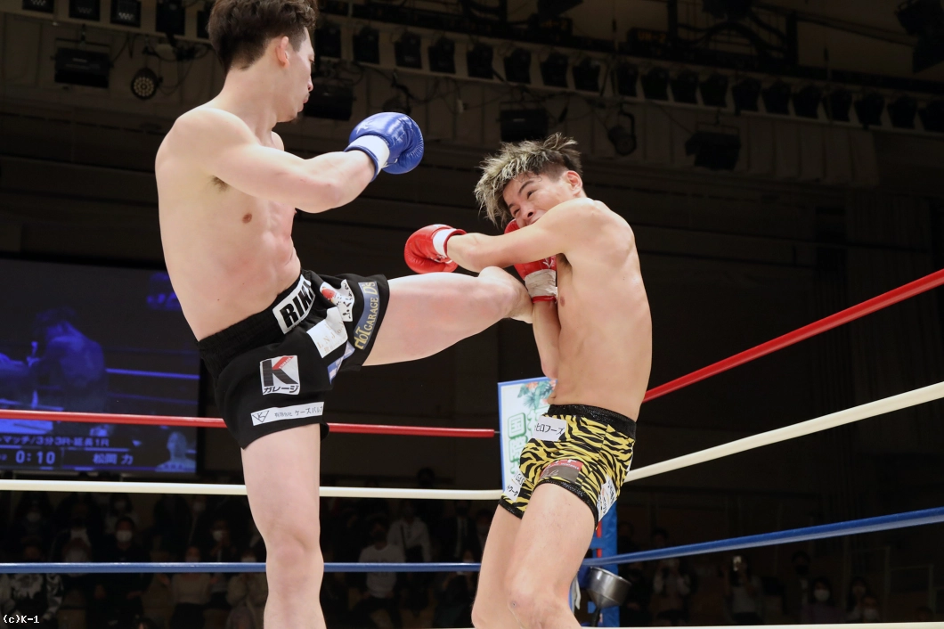 3R、松岡は右ストレートから左アッパーを連打。加藤は右目に異状があるか、右目を痛そうにする。強引に攻めない松岡。加藤は三日月蹴りを打ち込んで効かせる。前に来た松岡に加藤はカウンターの右ストレートを打ち込んで効かせるが、松岡は引かずに打ち合いへ臨み、逆に左フックと右ストレートで盛り返す。両者パンチに加え、加藤は左ハイ、松岡はバックブローと繰り出す。判定は30-27、30-27、29-28の3-0で松岡。前回の負けを覆して、新王者となった。
