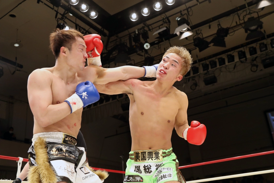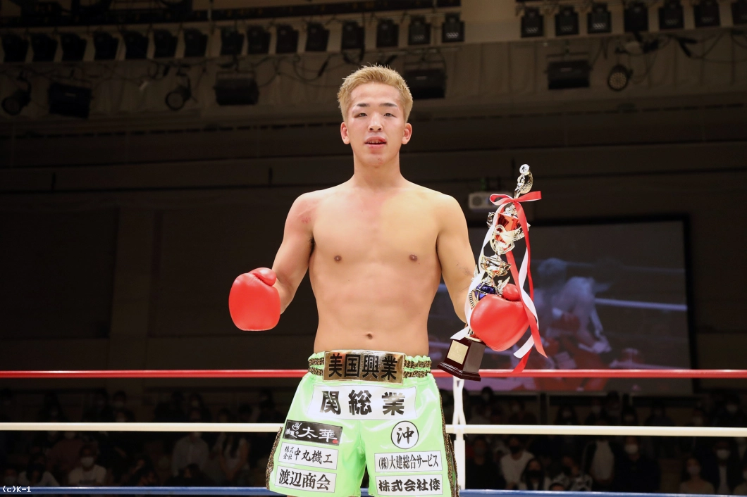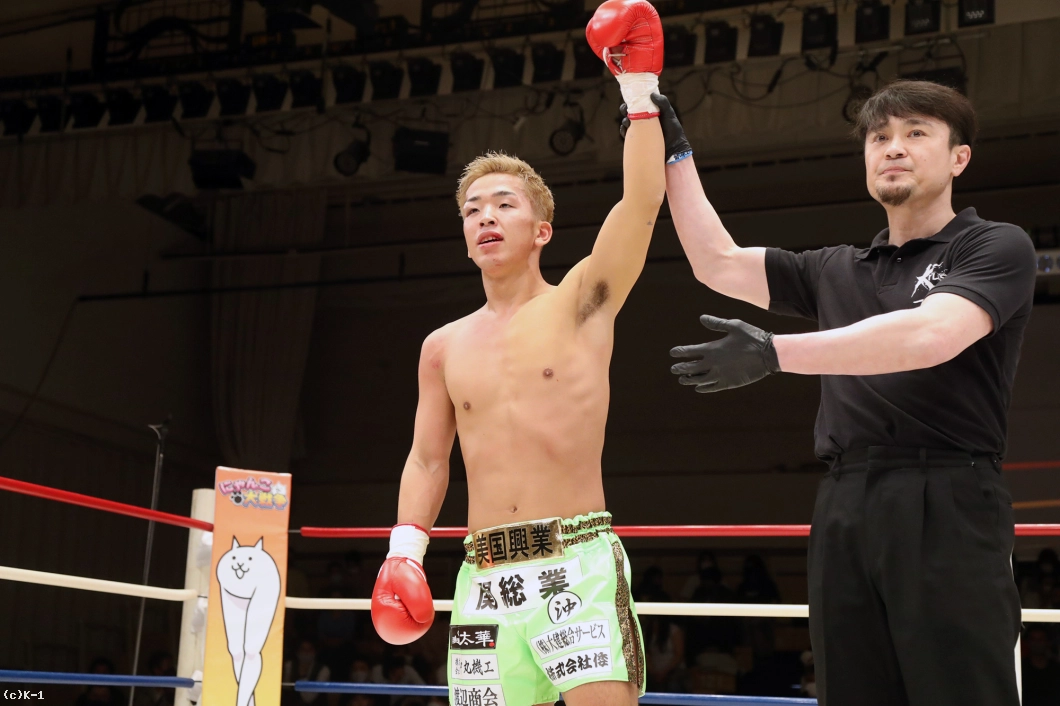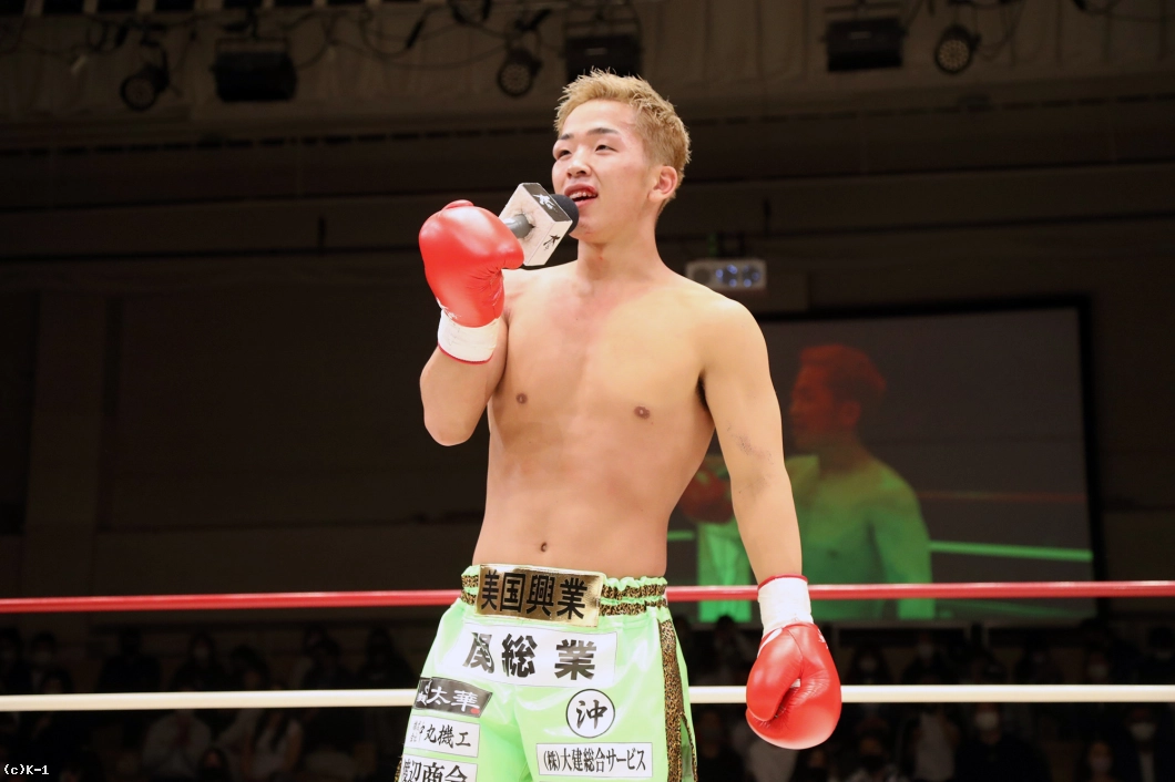 「とりあえずホッとしてます。どうでした?自分、変われてました(笑)? 復帰戦を勝ててよかったです。硬くなった部分はあったんですけど、変わったところを見せられたかなと思います。自分もっと強いし、実力はチャンピオンクラスだと思うんで、次に進みます。(対戦相手の印象は?)予定通りだったというか、準備してきた相手のイメージ通りで。イメージ通り過ぎて空回りしました。勝ったけどj反省点が多いのでもっともっと強くなれます。(今後の目標は?)もちろんKrushのベルトも狙っているし、いつでも獲れると思うんで。もっと上の山崎秀晃選手のK-1のベルトを獲るつもりで毎日頑張っています。これまでと変わらず、そのベルトを目指してステップアップしていきます」