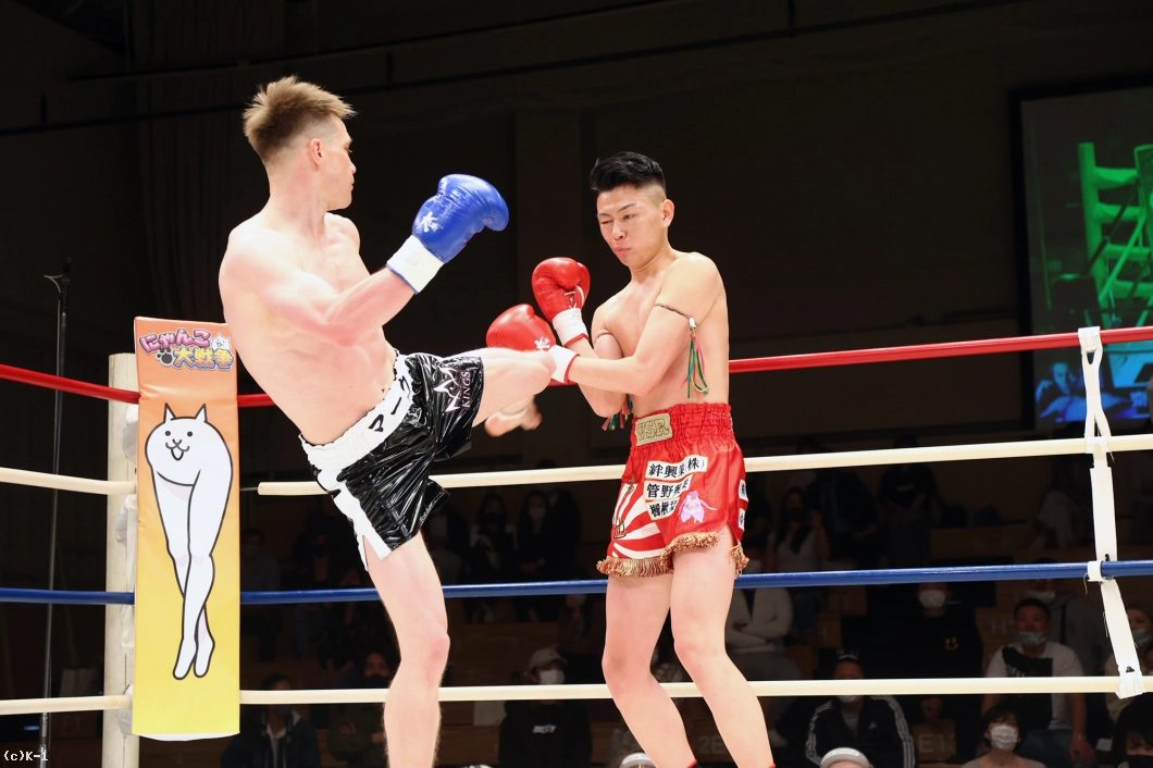 3R、齋藤は前に出て圧を掛けていき、ヒザとストレートでジェームスに迫る。左右に体をかわしてしのいでいたジェームスだが、左ストレートを被弾し体をフラつかせる。体勢を立て直し右ストレート、左ボディフックとジェームスは攻める。しかし齋藤は前進してこれを相殺。左フックと右ストレートで攻めて試合を終える。