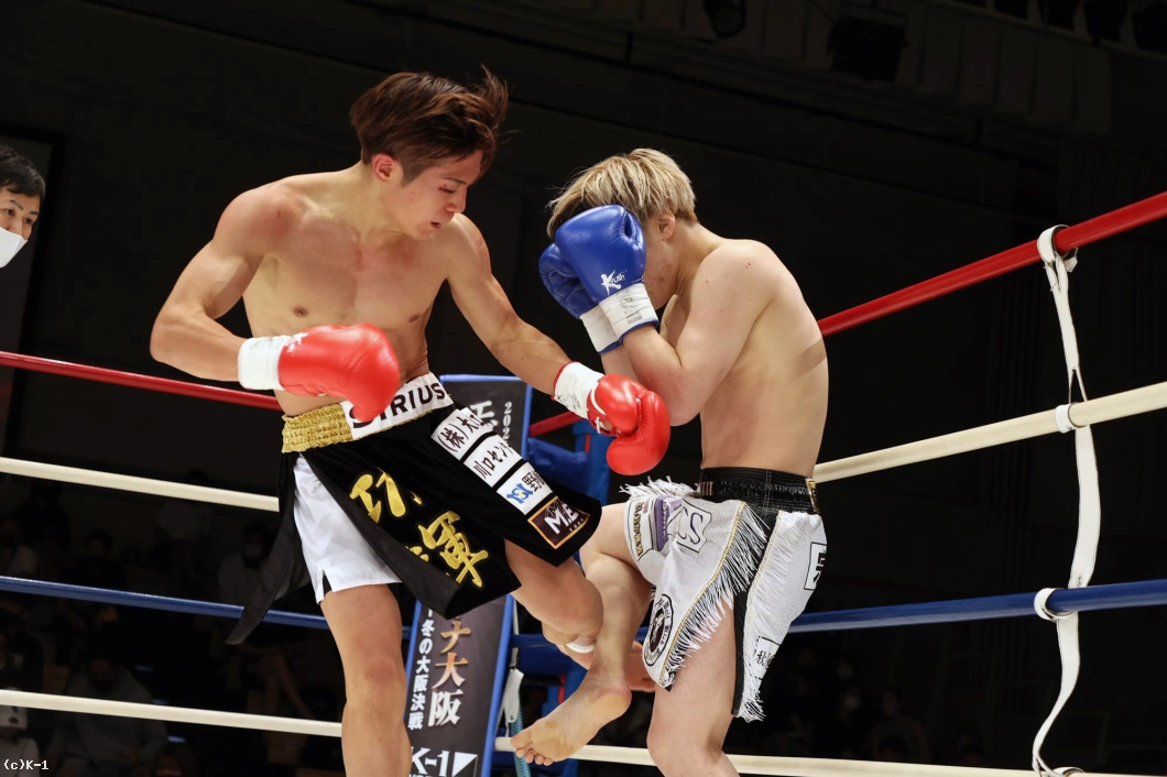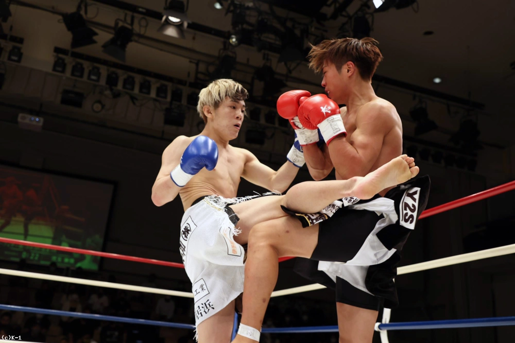 1R、赤田はサウスポーで向かい左ローを打ち込むが、児玉にローブローとなってしまいインターバルが取られる。再開。左ミドルを打ち込みながら前に出る赤田。しかし児玉はそこにパンチを合わせ、右ストレートのカウンターでダウンを奪う。立ち上がった赤田に児玉は強烈な、右ミドルも打ち込んで終える。