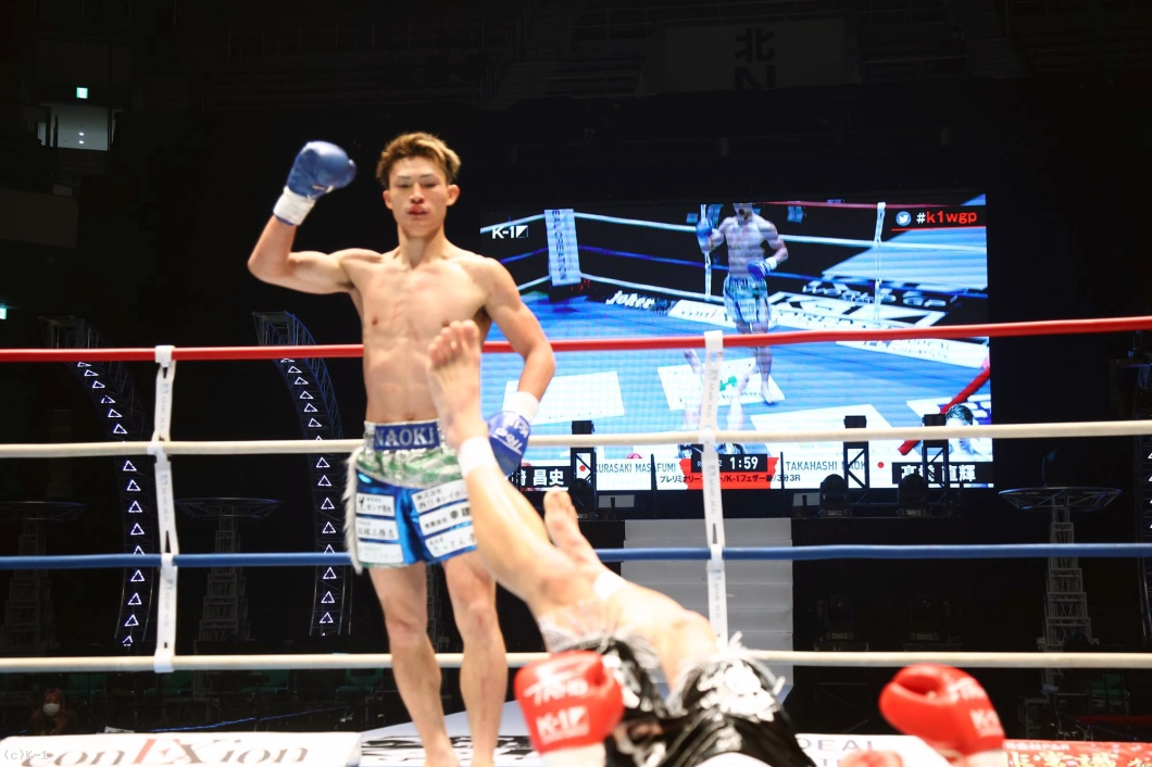 2Rも前に来る倉崎を髙橋は横にさばいてストレートを打ち込む。右ローを決めた倉崎だが、髙橋が右フックで打ち抜きダウン。立ち上がった倉崎を追い、髙橋は左フックから右ストレートを決め2度目のダウンを奪ってフィニッシュした。