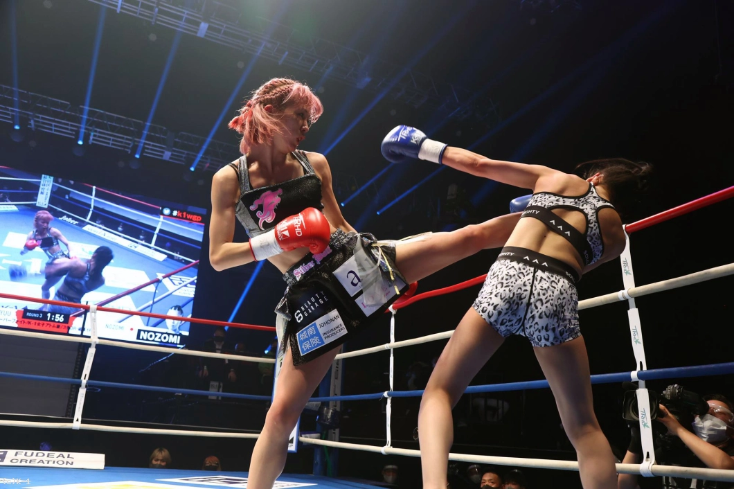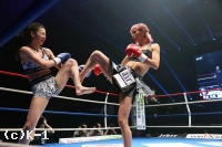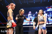 2R、ステップを使って突破口を探すNOZOMIに対し、菅原はリング中央に構えて前蹴りでけん制。ロープ際、蹴りで距離を作っての右ストレートでNOZOMIがダウン。NOZOMIはパンチを振るって出るが、やはり入ることができない。