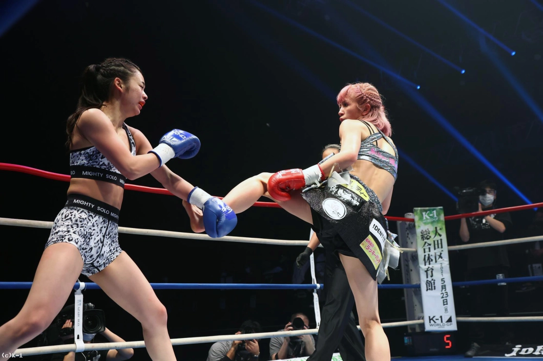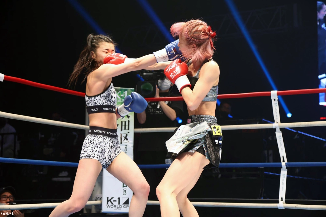 (KANA選手に階級を合わせてというのは?)KANAさんには練習でボコボコにされて、ちょっと怖いので(苦笑)。KANAさんの下の階級でがんばりたいなと思います。(K-1の舞台は?)憧れてた舞台なので楽しめました。緊張もあったんですけど、せっかく出られる機会なんてないし、楽しめなきゃというのがうまく転がったのかなって思ってます。