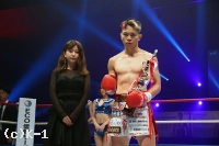 (相手の印象は?)思った以上に最初から前にガンガンきたんで、この試合にかける気持ちみたいなのを感じました。(1RKOで第1試合の仕事はできたのでは?)自分的にはあんまり喜べないんですけど、できたって思いますか?(1RKOなので)見てた人がそう思ってくれてたらいいなって感じですね。(試合後のマイクでベルトに言及したのは?)前回、チャンピオンの山崎選手とやらせてもらって負けたんですけど、選手をやるならもちろんテッペンを取る気でやりますし、それを改めて言いたいなと思って、言いました。