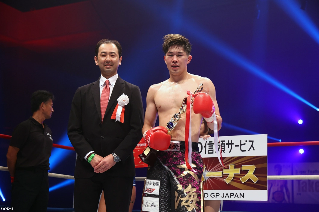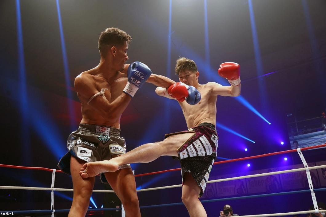 (ローは狙い?)いや、とりあえず蹴りでいこうと思ってたんですけど、当たるところからという感じですかね。相手の選手はメチャクチャローキックをカットしてくるかなと思って、僕も警戒してたんですけど、蹴れるところからという感じです。(パンチでは倒れないというのは実感した?)けっこう後半はパンチも当たってたと思うんですけど、やっぱり倒れなかったですね。
