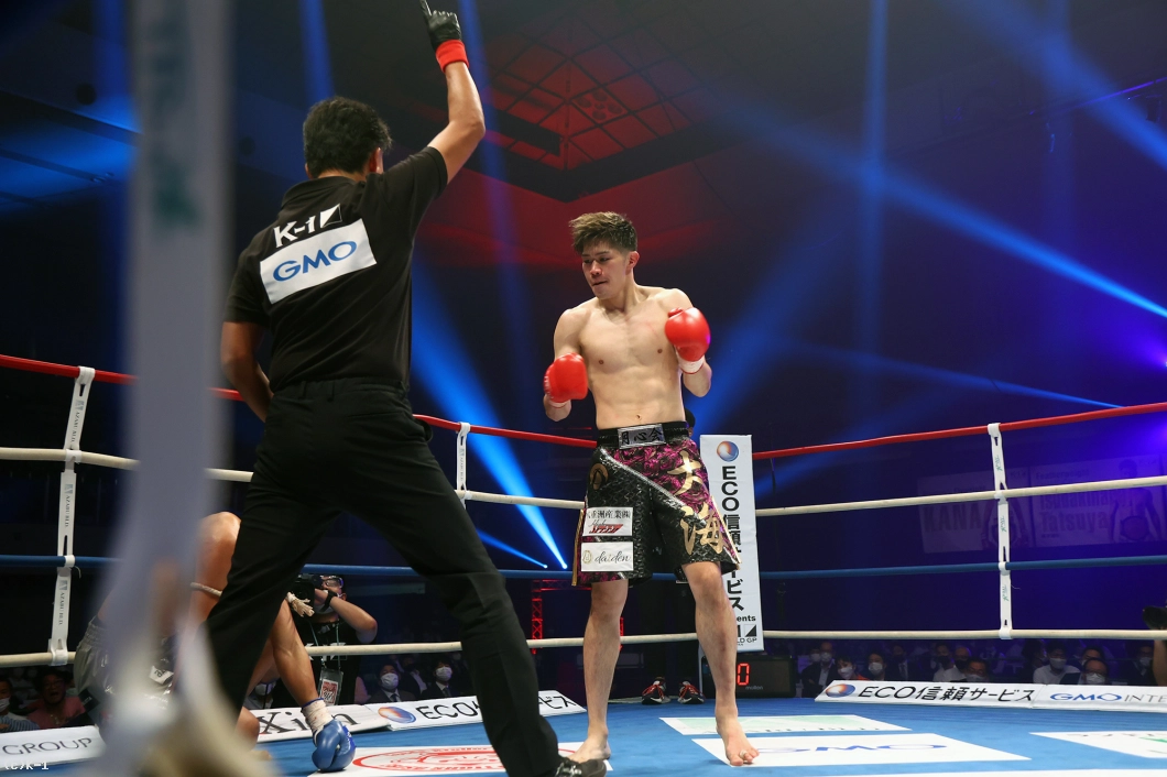 3R、左ローを放つ和島だが、これがアビラルの下腹部にも入ってしまいインターバルに。再開するもアビラルはローが効いて出て来られない。右ストレートを当てるアビラルだが続かない。しかし左ローに遂に倒れ、アビラルはローブローをアピールするが、これは受け入れられずダウンカウントが進む。 立ち上がったアビラルはロープ・コーナーを背にそれでも右ストレートを振るう。しかし左ローを浴びるとアビラルは大の字に倒れ、和島のKO勝利となった。