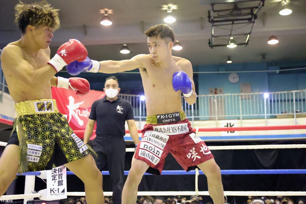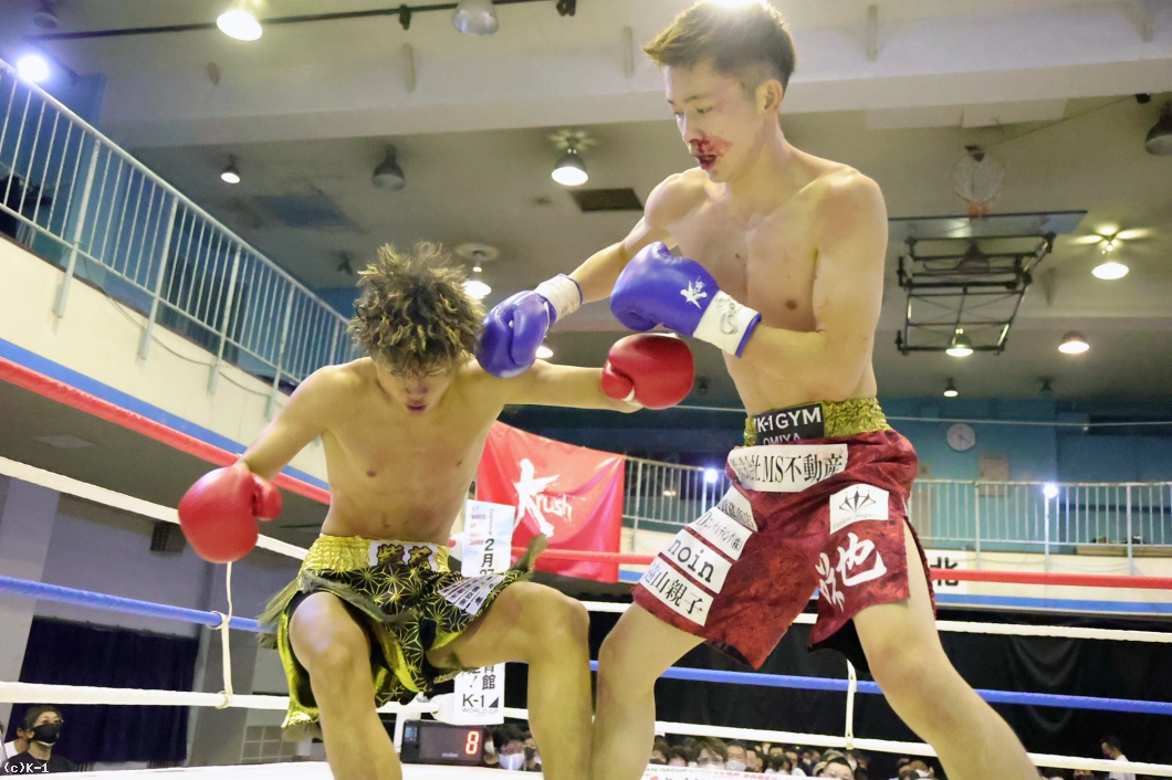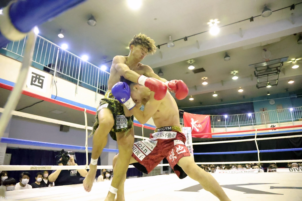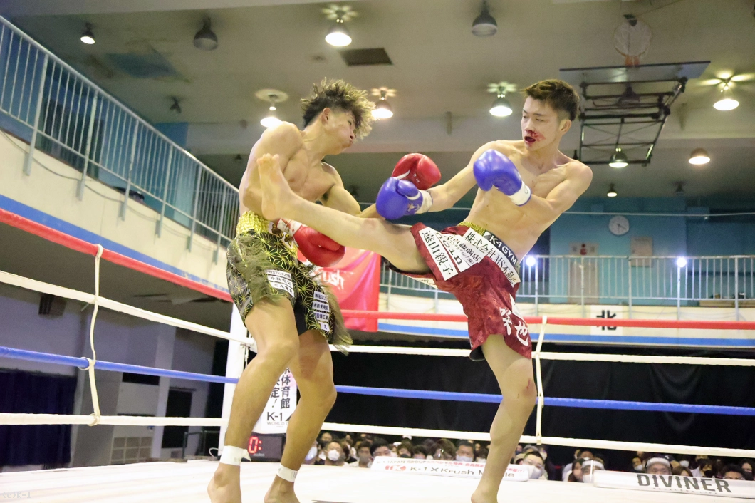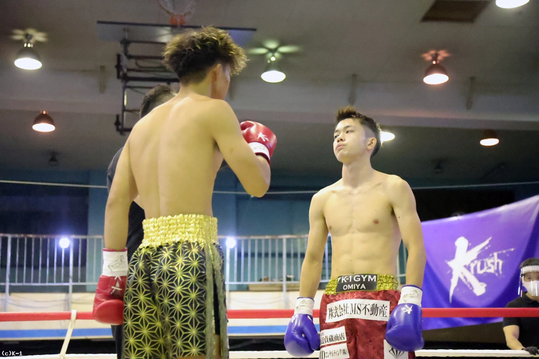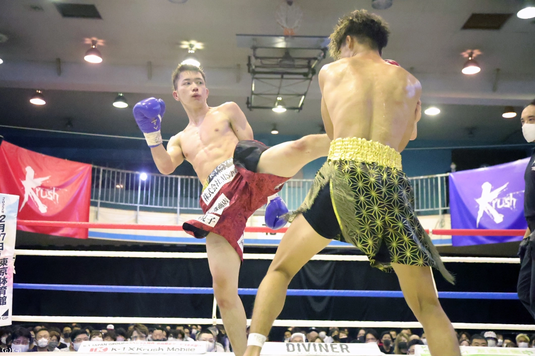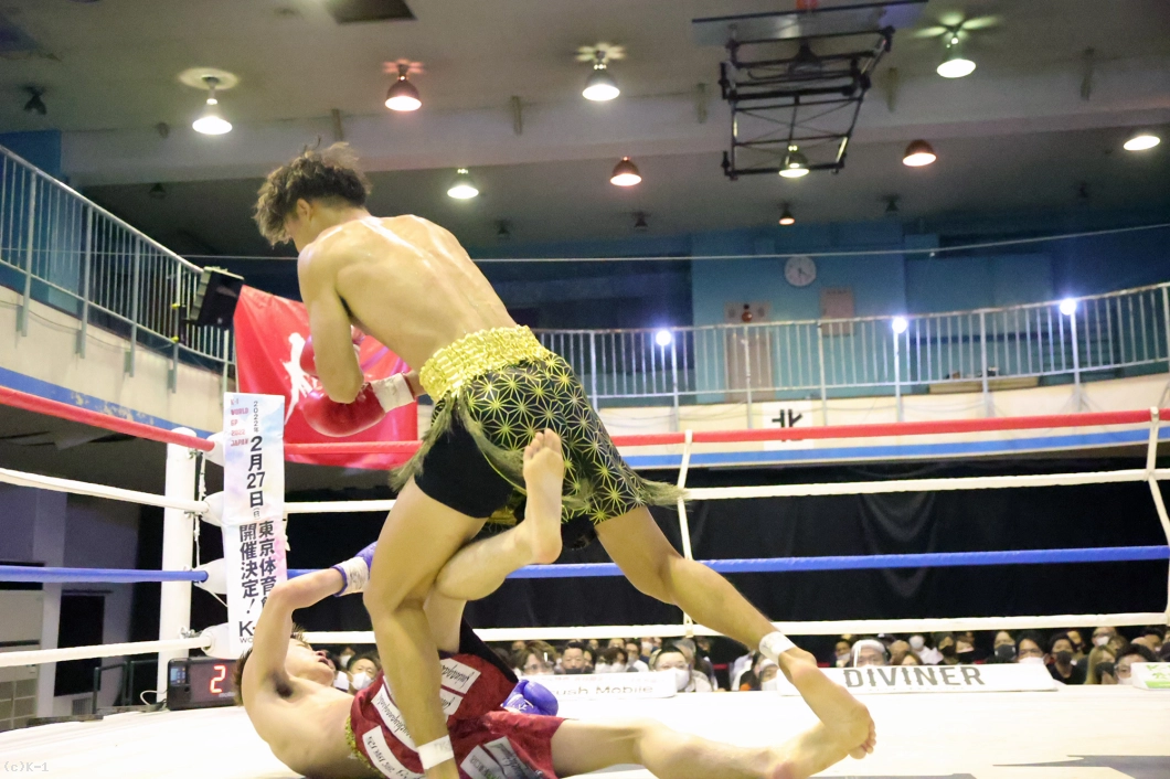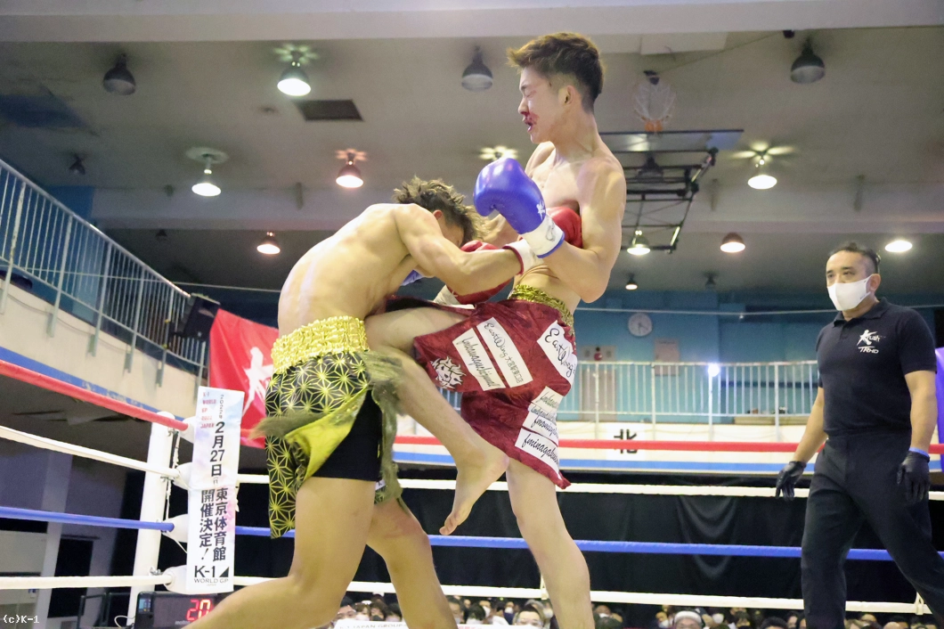 「応援してくれたみなさんありがとうございます。本来より一階級上の試合で、圧力があって最初は倒されたんですけど最後は倒せてよかったです。(対戦相手の印象は?)映像ではそこまで威力がなさそうと思ったんですけど、ジャブ・ストレートをもらって効いて、威力がありました。(今後の目標は?)K-1チャンピオンを目指すんですけど、一個一個段階を踏んで。欲しいベルトがあるんで、そのベルトを取ってK-1に殴り込もうと思っています」