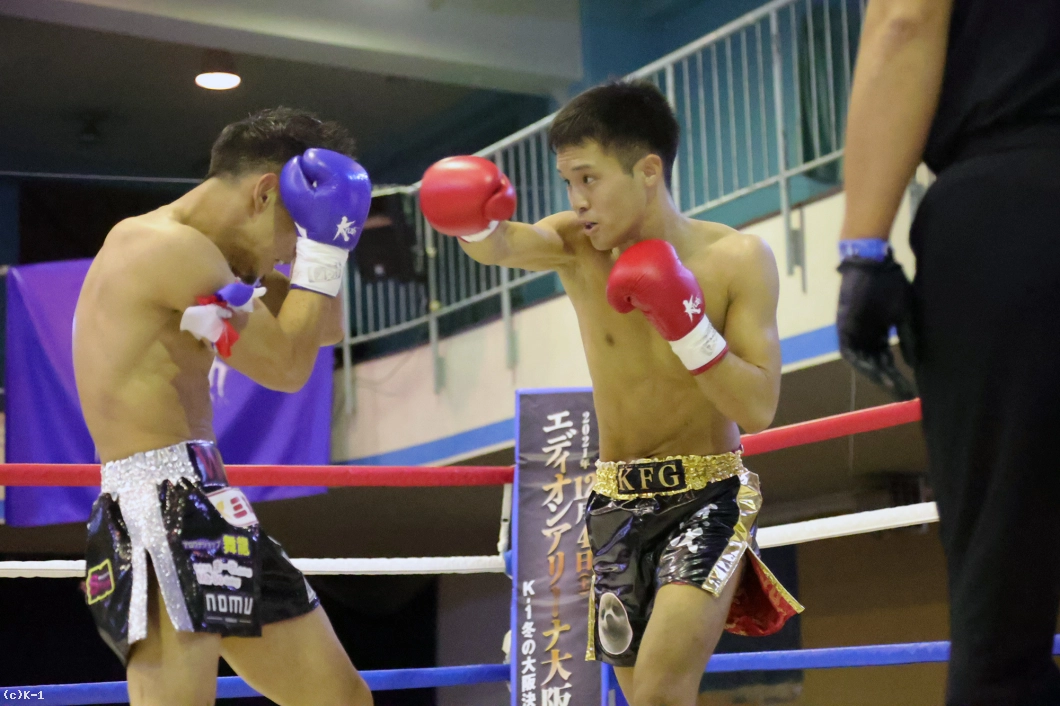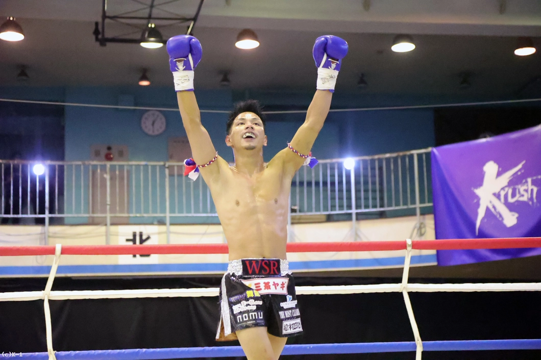 「相手も気持ちが強くて、当初ボディで倒そうと思っていたんですけど、なかなか倒れてくれなくて。とっさに当たると思って出した左ハイキックでKOできてよかったです。(対戦相手の印象は?)中に入れば僕の方が強い自信があったんですけど、すごく僕の対策をしてきているなと思いました。(今後の目標は?)Krush本戦を目指して、用意された試合をクリアしてベルトを狙っていきたいです」