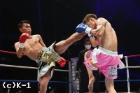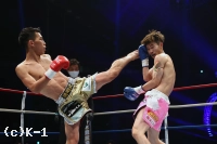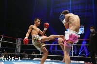 (K-1ルールと、それに慣れた相手についてのやりづらさは感じた?)もし総合ルールとかでルールを増やすとかだったらちょっと大変だと思うんですけど、減らす分には、全然苦労はしなかったですね。やっぱりヒジとかはなかなか出すものじゃないんで。首相撲は、無意識に組んじゃって『あっ!』っていう場面はあったんですけど、そんなに難しくはなかったですね。また呼んでほしいです。そのときにはもっともっと、K-1に近いムエタイをしたいです。(ファンにメッセージを)今回は口だけになってしまったんですけど、もっともっとやれるので、自分を信じて応援してください。ぜひよろしくお願いします。すみませんでした」