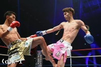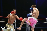 2R、上半身を揺らす一航へ璃明武が左右のロー。璃明武の左ジャブ連打へ一航が左ミドル。ガードを固める一航へ璃明武が左右フックのコンビネーションをまとめる。一航の蹴りにパンチを合わせる璃明武。左ドルの打ち終わりにジャブを顔面に突き刺し、一航の打ち返す左フックはバックステップで空転させる。