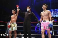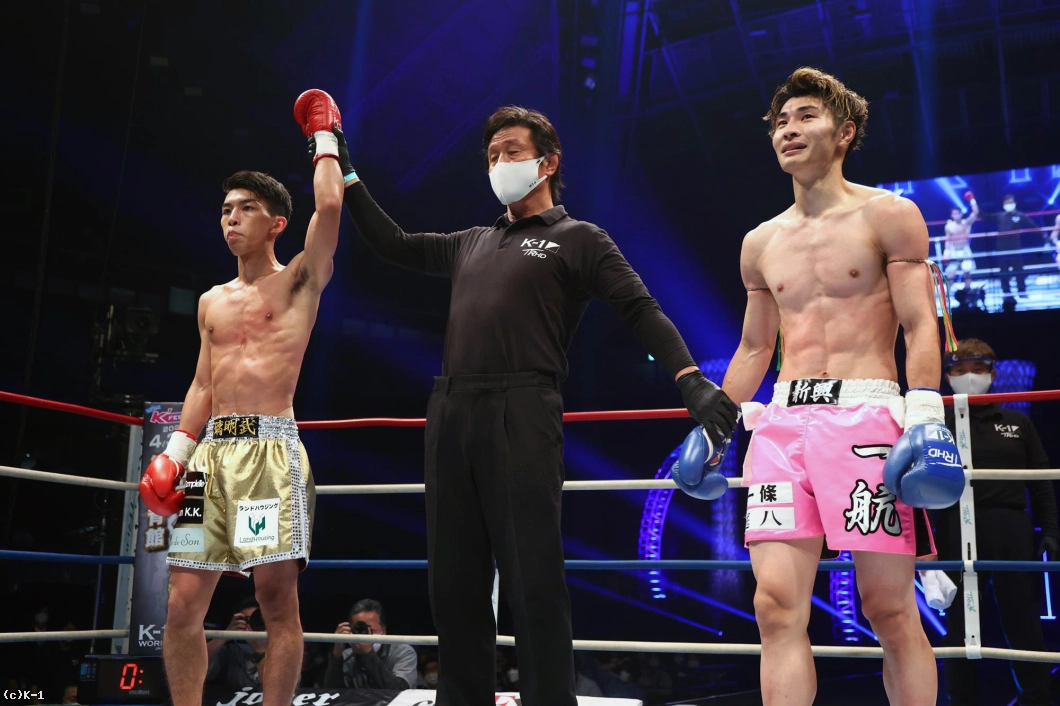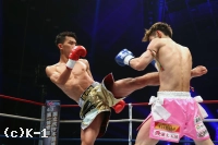 3R、蹴りで圧力をかける一航へ、璃明武は鋭い左ジャブでけん制。一航が左のミドル、ハイをバックステップで空転させる璃明武。パンチで距離を詰め、左ミドルを着実にヒットさせる。さらに左ジャブで距離を測り、右ロー、右ミドル。左ボディで飛び込む一航にバックステップで距離を取ると、璃明武は前蹴りでで突き放し、終了直前に右ストレートをヒット。試合終了のゴングがなると璃明武は真っ先に右手を挙げ勝利をアピールした。ジャッジは三者とも30-29で璃明武の勝利を支持。ムエタイ三冠王に勝利して、金子晃大が待つ準決勝へコマを進めた。