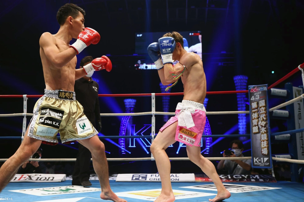 1R、開始早々璃明武が右ローキック。リングの中央に位置する一航へ璃明武が強い右ローを放つ。上半身でリズムを取るムエタイ風の構えから一航が右ミドル。一航の右ローに璃明武が左右フックを合わせる。左ジャブを突き刺す璃明武に合わせた一航の右は空転。その打ち終わりに璃明武が左ジャブを再び合わせる。先に手を出す一航に、打ち終わりに合わせる璃明武の図式。