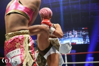 2R、RANがKANAの前進に合わせ左右フック連打。大振りの右フック、右前蹴りから右アッパーと、バリエーションのある攻撃でKANAを攻める。しかし距離を詰めたRANの右に合わせたKANAの右ストレートがクリーンヒットしRANがダウンを喫する。立ち上がったRANは前進するも、KANAが左右フック、ヒザをボディにまとめる。KANAが左ジャブから右カーフと上下に散らし、RANは足が止まり始める。ラウンド終盤にはKANAのカウンターの左フックがアゴを捉え、RANの動きが止まる。