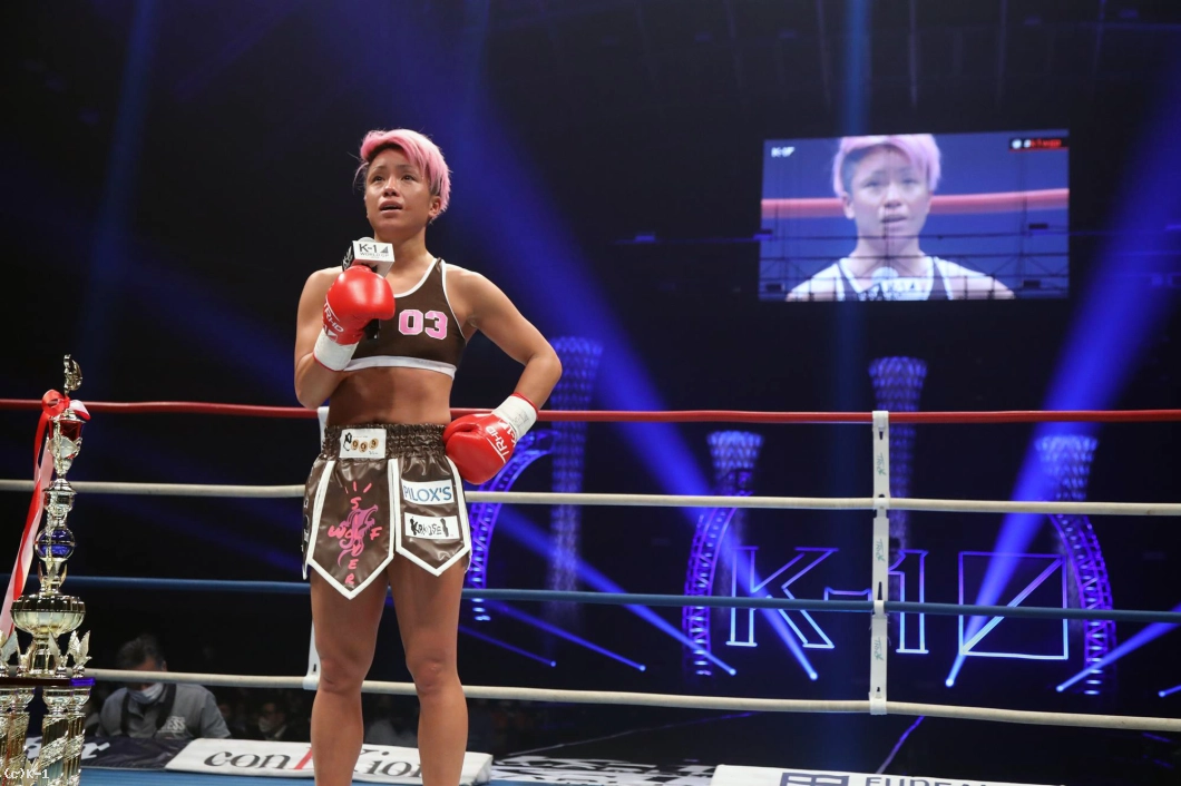 マイクを握ったKANAは「今日はここに戻ってこられて幸せです。たくさん支えてくれた方のおかげで、KOにはならなかったですけど勝利をつかむことができて感謝しています」と涙声で感謝の言葉。そして「先頭を引っ張っていく立場として魅せる試合をしたかった。次の試合は必ず倒します。K-1の舞台を目指す女子の選手も増えているので、自分が先頭としてひとつ上のステージに持っていきたいと思います」と、K-1女子のリーダーとして新たなるステージへの挑戦を宣言した。