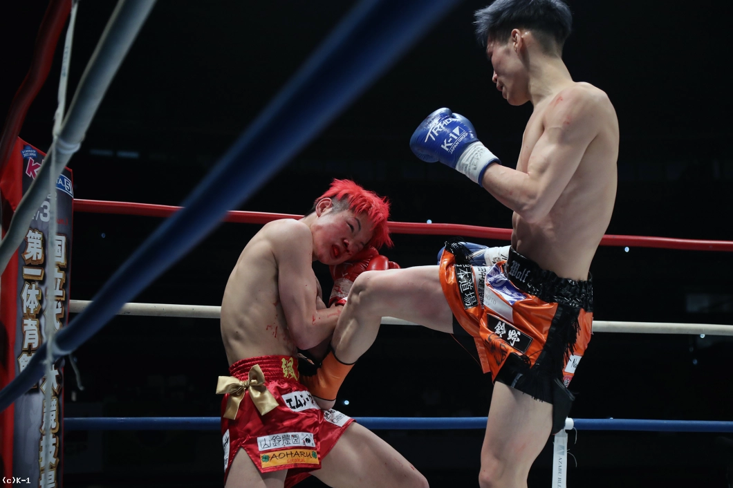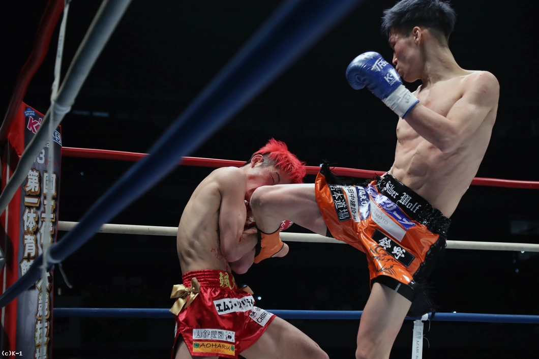 3R、前に出る天野へ田中が右カーフを合わせる。天野の打ち終わりにパンチ、左ミドルを合わせる田中。入りきれない天野へ田中が長い右ストレート。奥足への左ローで天野が右足にダメージを抱える。鼻血を流す天野にドクターチェックが入るも試合再開。飛びヒザ蹴りを見せた天野へ、田中が奥足への左ローを立て続けにヒット。足を引きずる天野をコーナーに詰め田中がパンチから左ローを上下に散らすとレフェリーが天野にスタンディングダウンを宣告する。ダメージ大とみたレフェリーがそのまま試合を止め、田中が3R2分51秒でKO勝利を収めた。