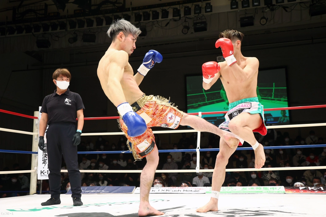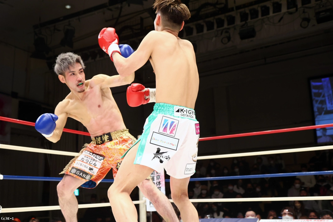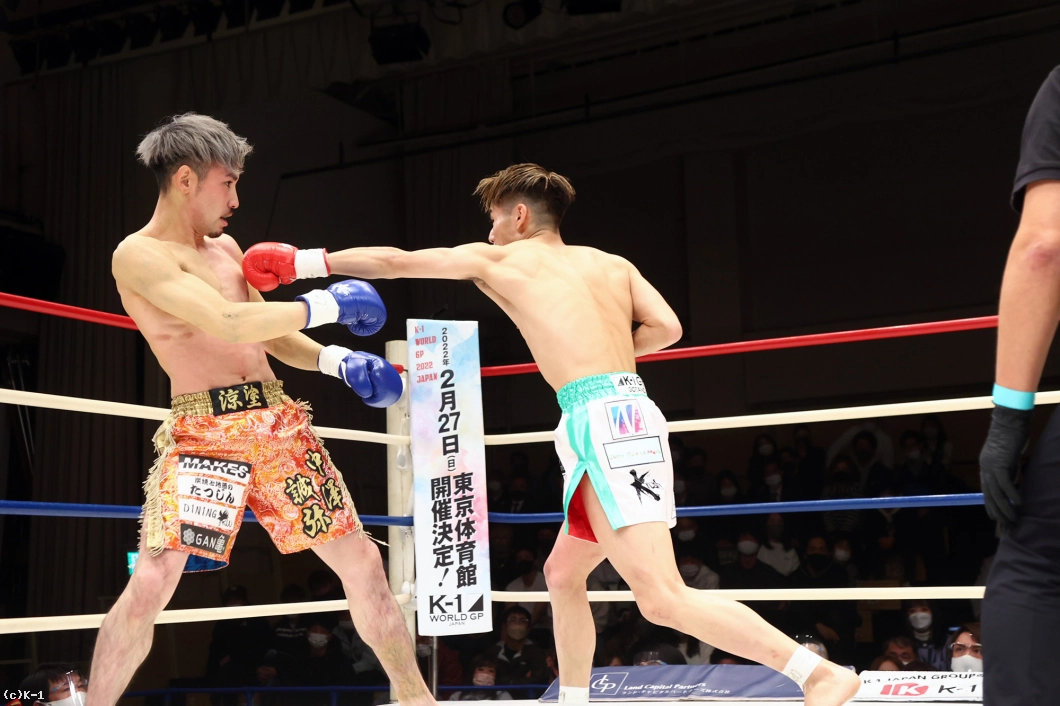 「ダメなところがむちゃくちゃありますね。7割くらいはダメだったっすね。自分が思ったように試合はできなかったです。(対戦相手の印象は?)試合前はめちゃくちゃビビってんじゃん!って思ったんですけど、リングチェックの時には目が変わって戦闘モード入ってましたね。(今後の目標は?)今回はダメダメだったんで練習を積み重ねて苦手なところを直して。最初にKrush(バンタム級)を獲って、スーパー・バンタム級にも挑戦して。それでK-1のベルトを獲ります」