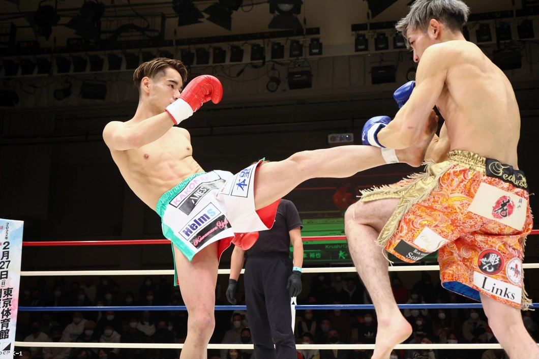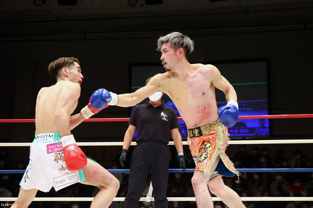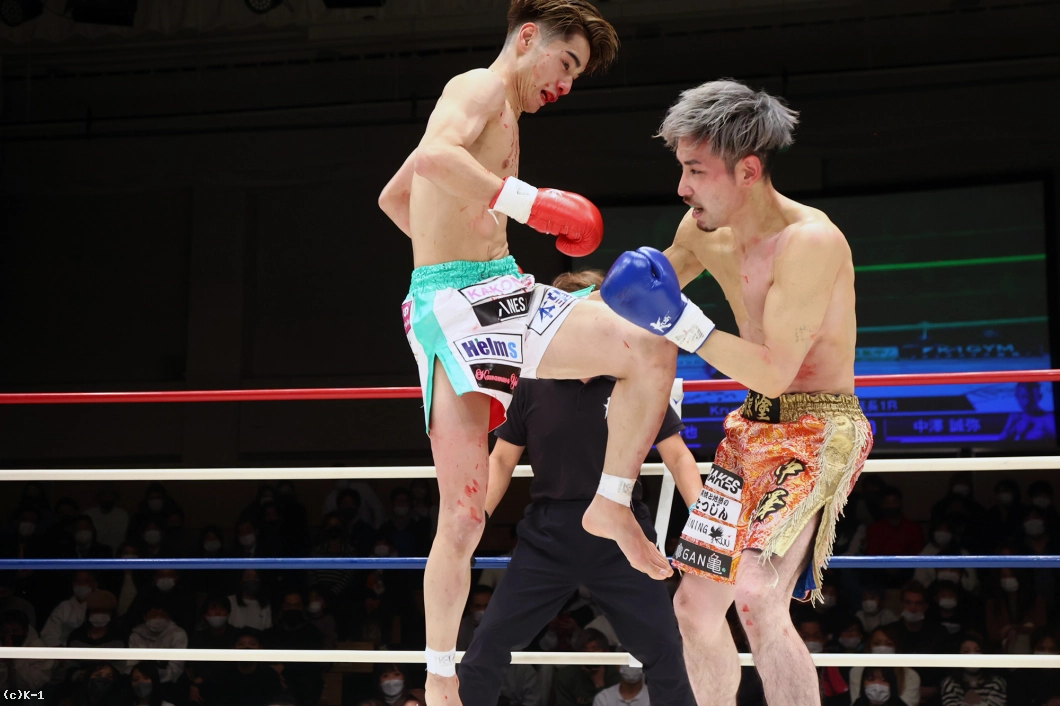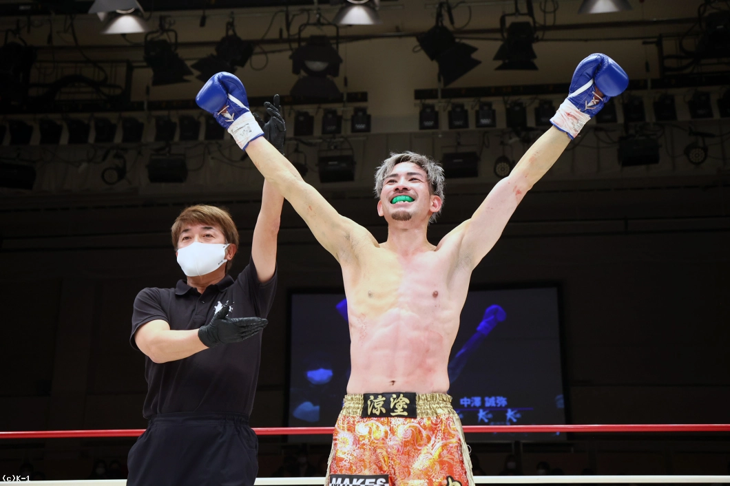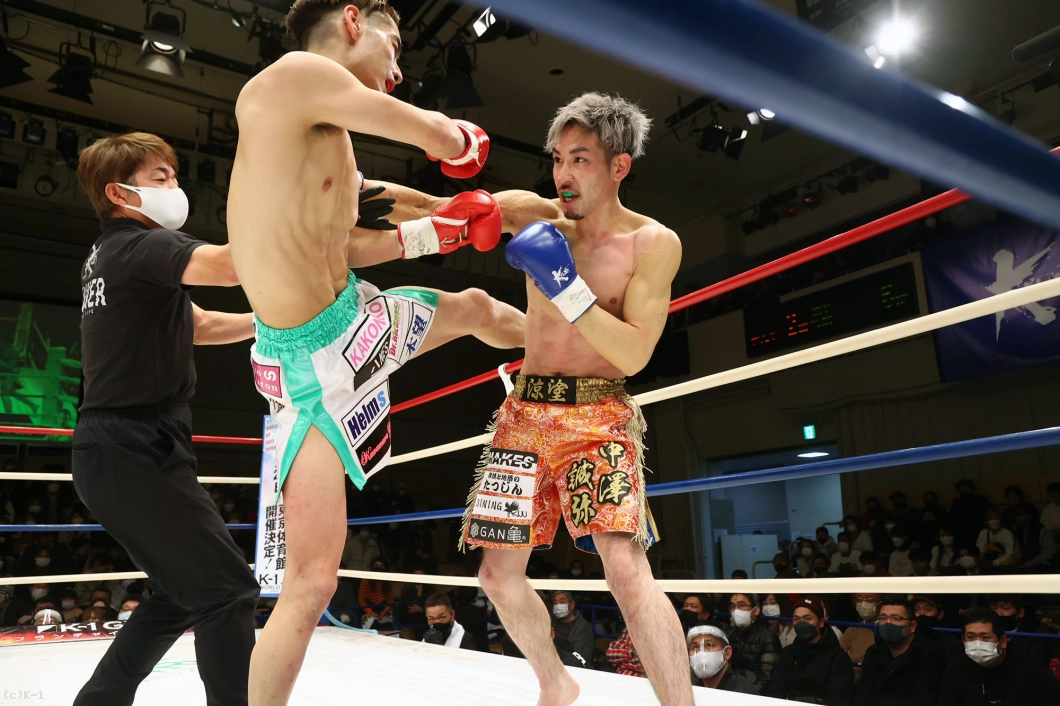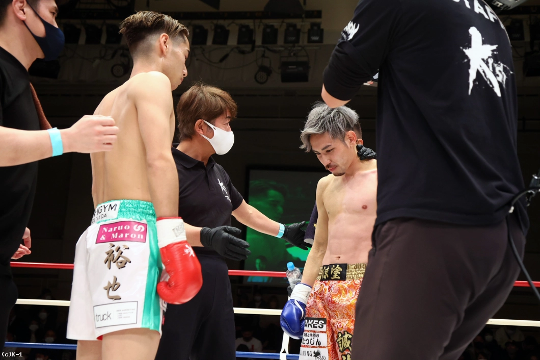 3R、三日月蹴りから右ストレートで前に出んとした中澤だが、橋本もそこにカウンターのストレートを狙う。中澤はローから右ストレートをヒット。橋本は鼻から出血が見られる。左ストレート、右フックと強振する橋本だが中澤は当てさせず、逆に右ストレートを振るう。判定は28-27、28-27、28-27の3-0で中澤。互いにダウンを奪い合った試合を制した。