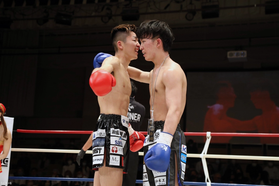 「稲垣選手は思っていた通り強かったです。(対戦相手の印象は?)代理戦争でやった時より強くなっていたし、自分の成長も感じたし、勉強になる試合でした。(今後の目標は?)8月10日にK-1福岡大会があるんで、僕は九州が地元なんでトップ選手とやりたいです」