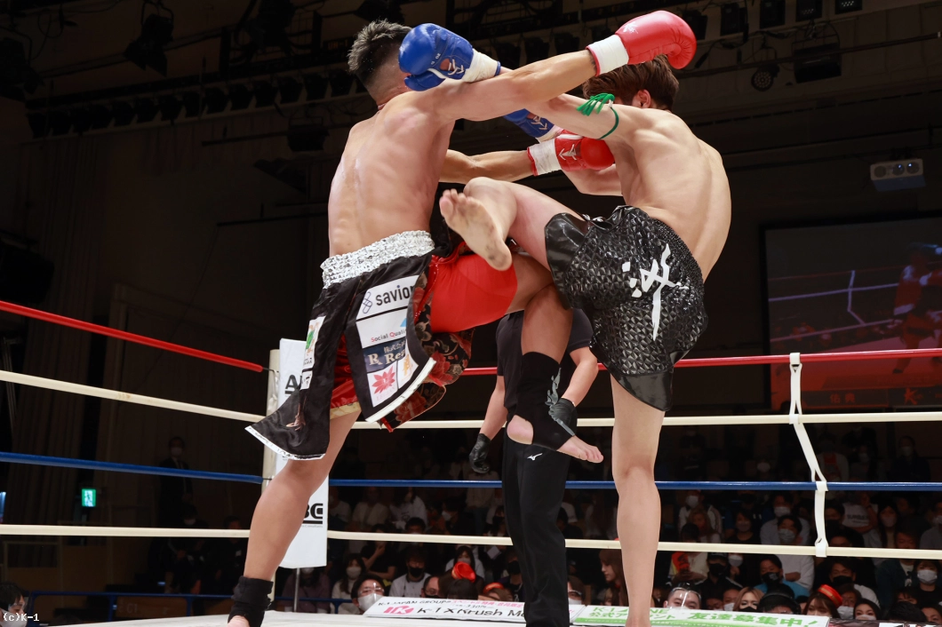「全然ダメダメって評価です(苦笑)。練習では蹴りで入って、パンチで組み立てる作戦だったんですけど、佑典の距離の取り方が上手くて入れなくて。蹴って蹴って、でパンチを見せられなかったので(感想は)悪かったです。(Krushルールについて)佑典がすごく中に入ってくるわけではなく、遠い距離からのパターンだったのでムエタイと同じ展開になったと思います。Krushらしいオラオラがなかったんで……という感じです。(今後の目標は?)ムエタイも続けつつ、Krushにも出させてもらって、どちらも練習して、どちらのルールもできるようになりたいです」